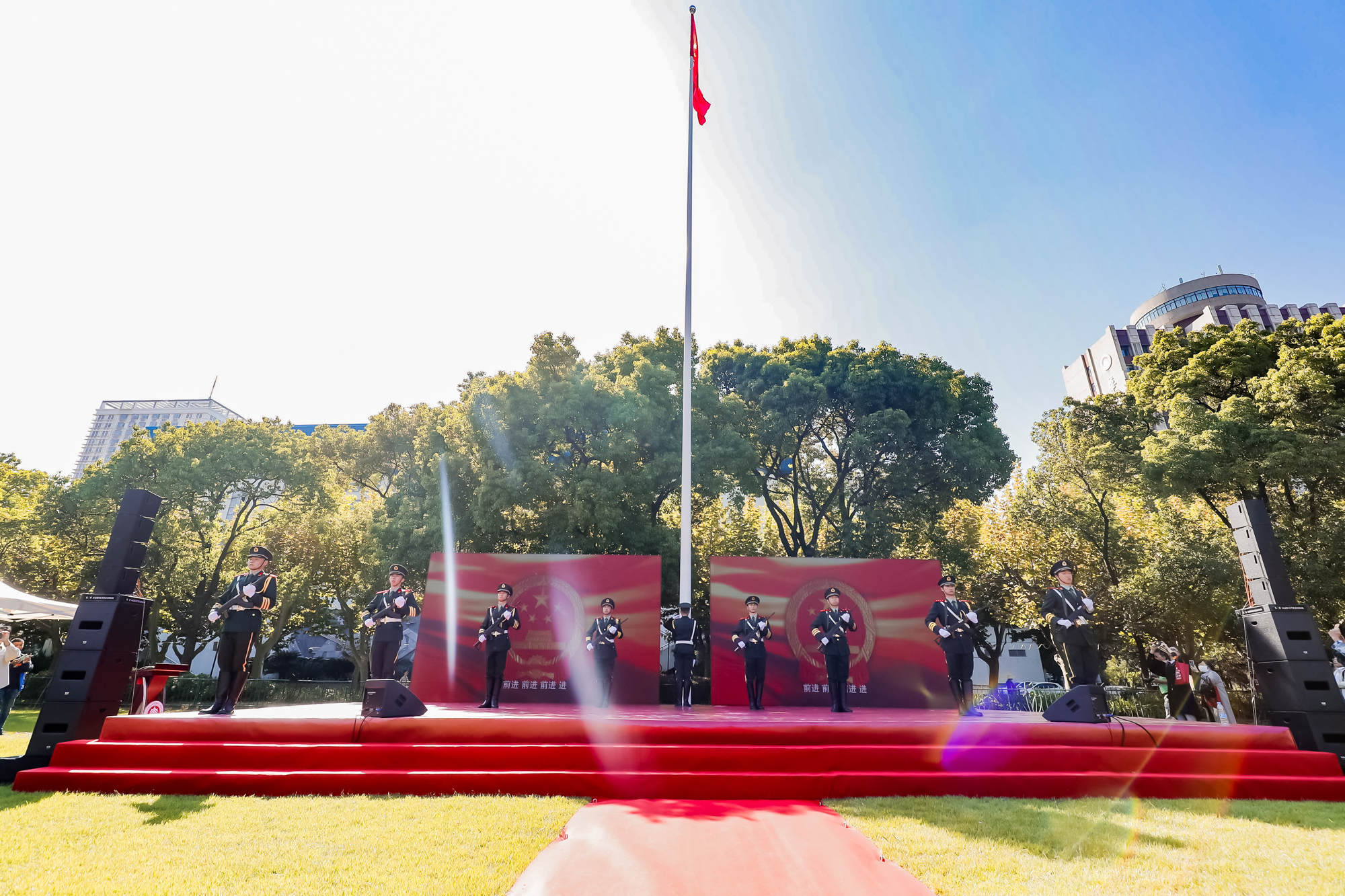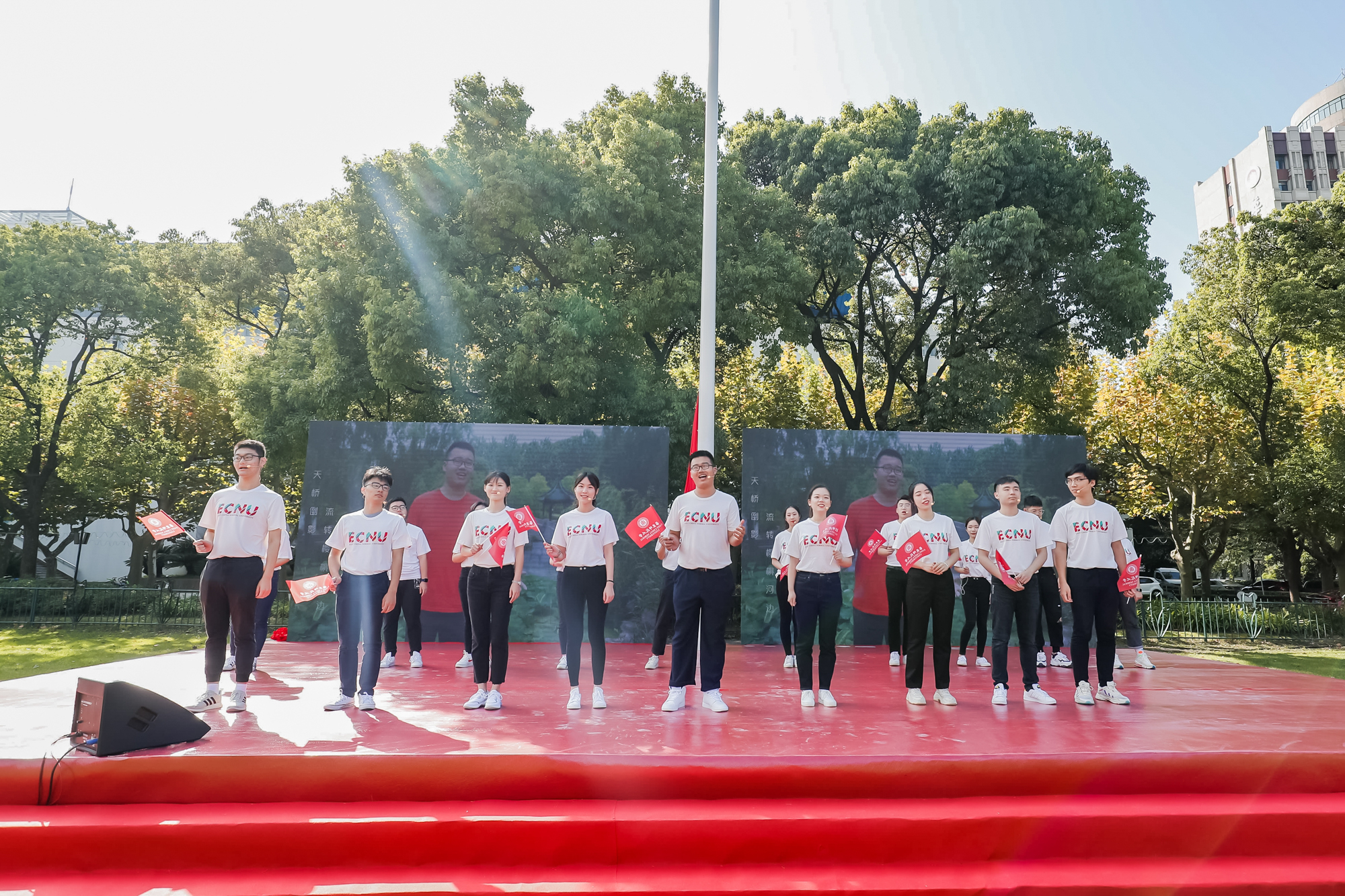 上午9时,校友日启动仪式在校艺术团演绎的快闪歌曲《师大回忆》中拉开帷幕。这首由2006级温浩校友创作的歌曲道出了无数校友的心声——无论时光如何变迁,那些师大记忆将永刻心田。校国旗护卫队护送国旗穿过文史楼前的草坪来到舞台中央,庄严的国歌声中,五星红旗冉冉升旗,全体校友肃立向国旗敬礼。