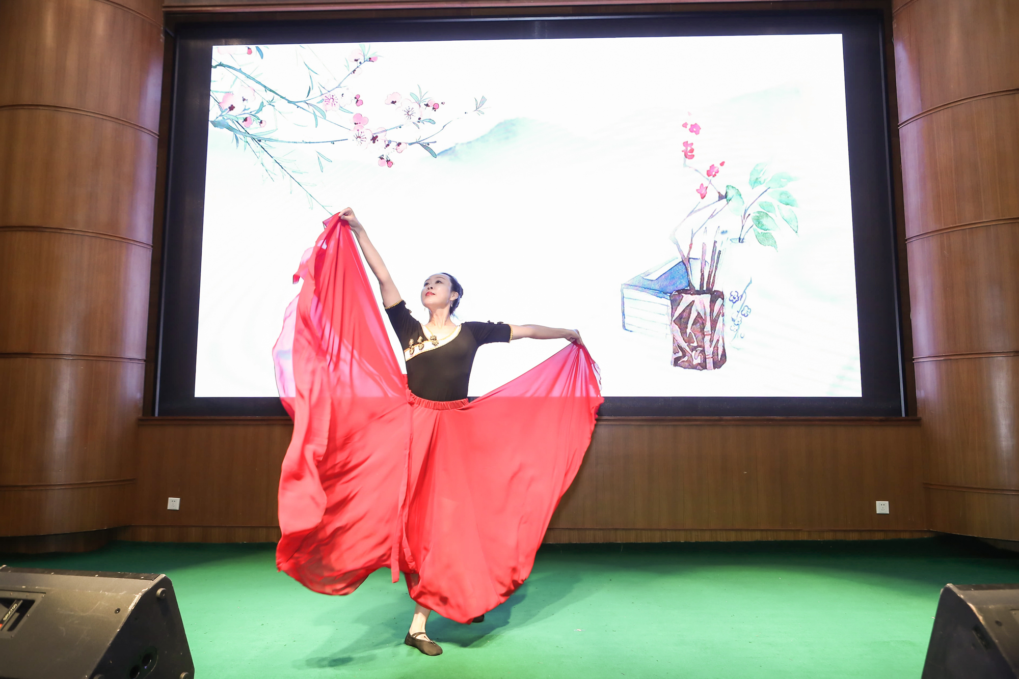 在文艺表演环节,校友们精心准备了独唱、表演唱、舞蹈、诗朗诵等节目来表达对母校的思念和眷恋,对同窗的牵挂和情谊、对恩师的感激和谢意。