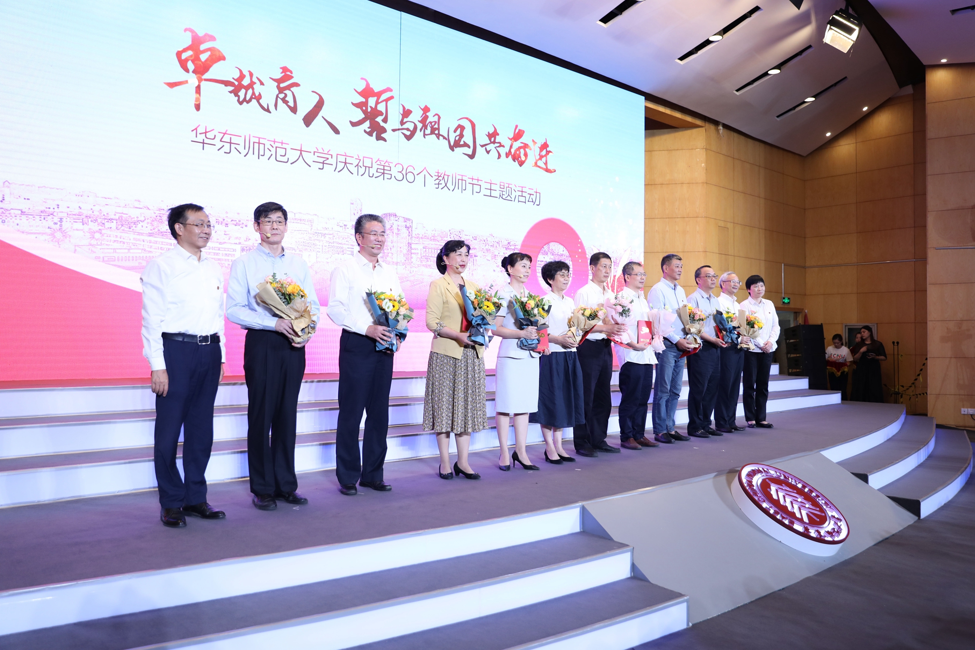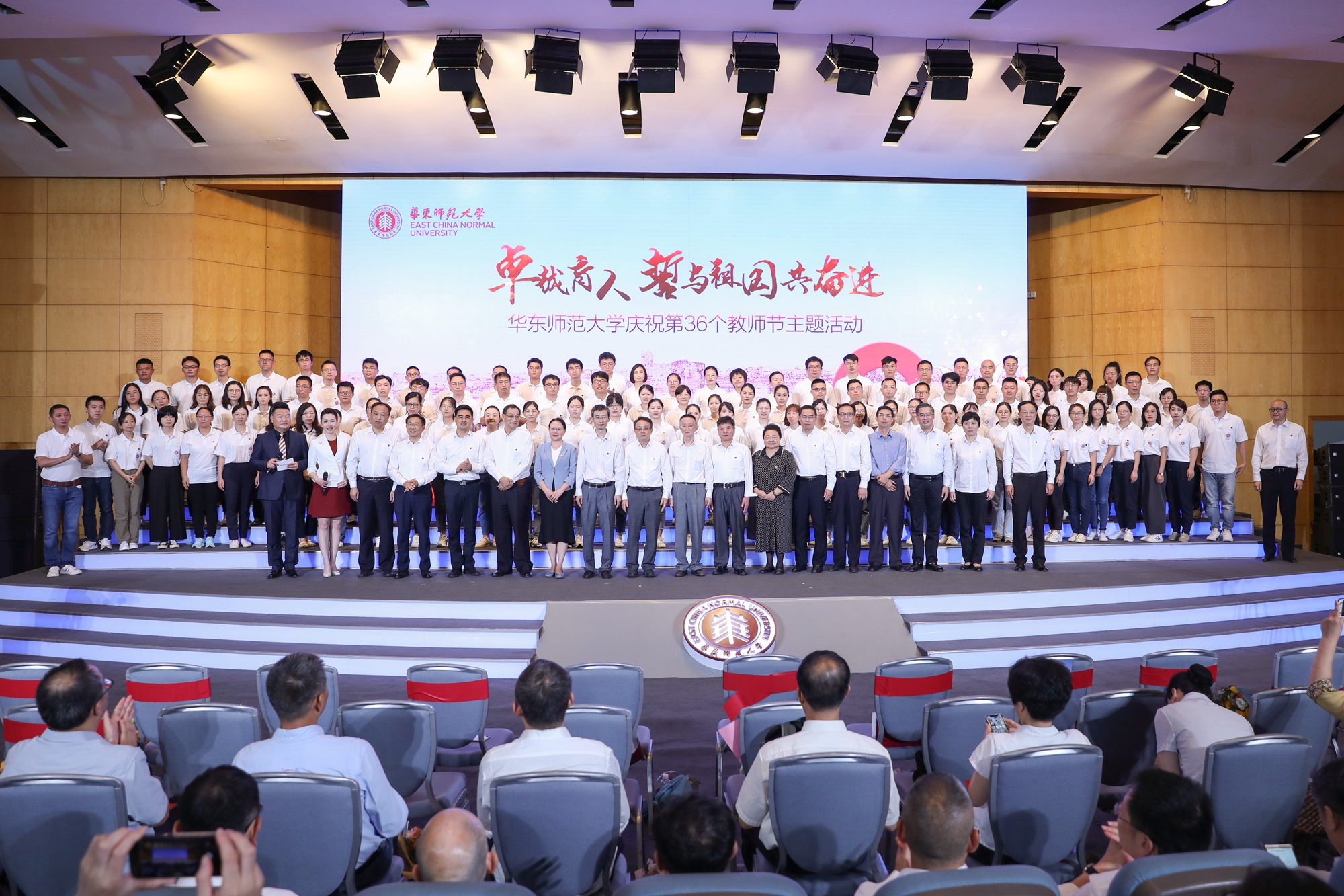 9月10日上午,华东师大“卓越育人,誓与祖国共奋进”庆祝第36个教师节主题活动在中山北路校区科学会堂举行。活动现场表彰了学校第十二届师德标兵和30年教育工作龄的教师,并举行了新入职教师宣誓仪式。