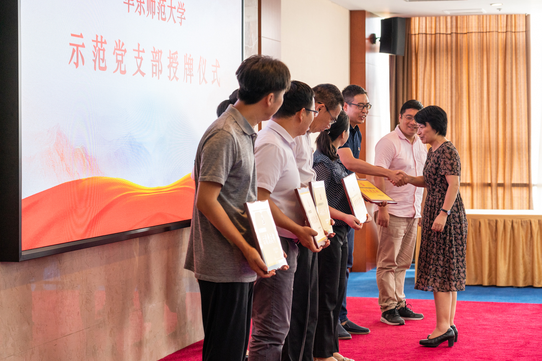会议首先对校示范党支部进行授牌。曹友谊宣读学校党委决定,梅兵为示范党支部负责人授牌。随后,会议对2019年度校党建研究课题优秀成果进行表彰。曹友谊宣读表彰通报,王宏舟为获奖课题组颁奖。