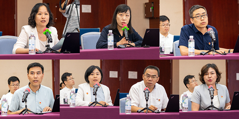 在大会的交流讨论环节中,7位来自院系级单位和职能部门的代表先后分享了学校各个层面在推动落实“双带头人”支部书记培育工作过程中的做法经验、问题瓶颈,以及思路对策,交流探讨如何建设新时代高校党建和业务双融合、双促进的“双带头人”支部书记队伍。