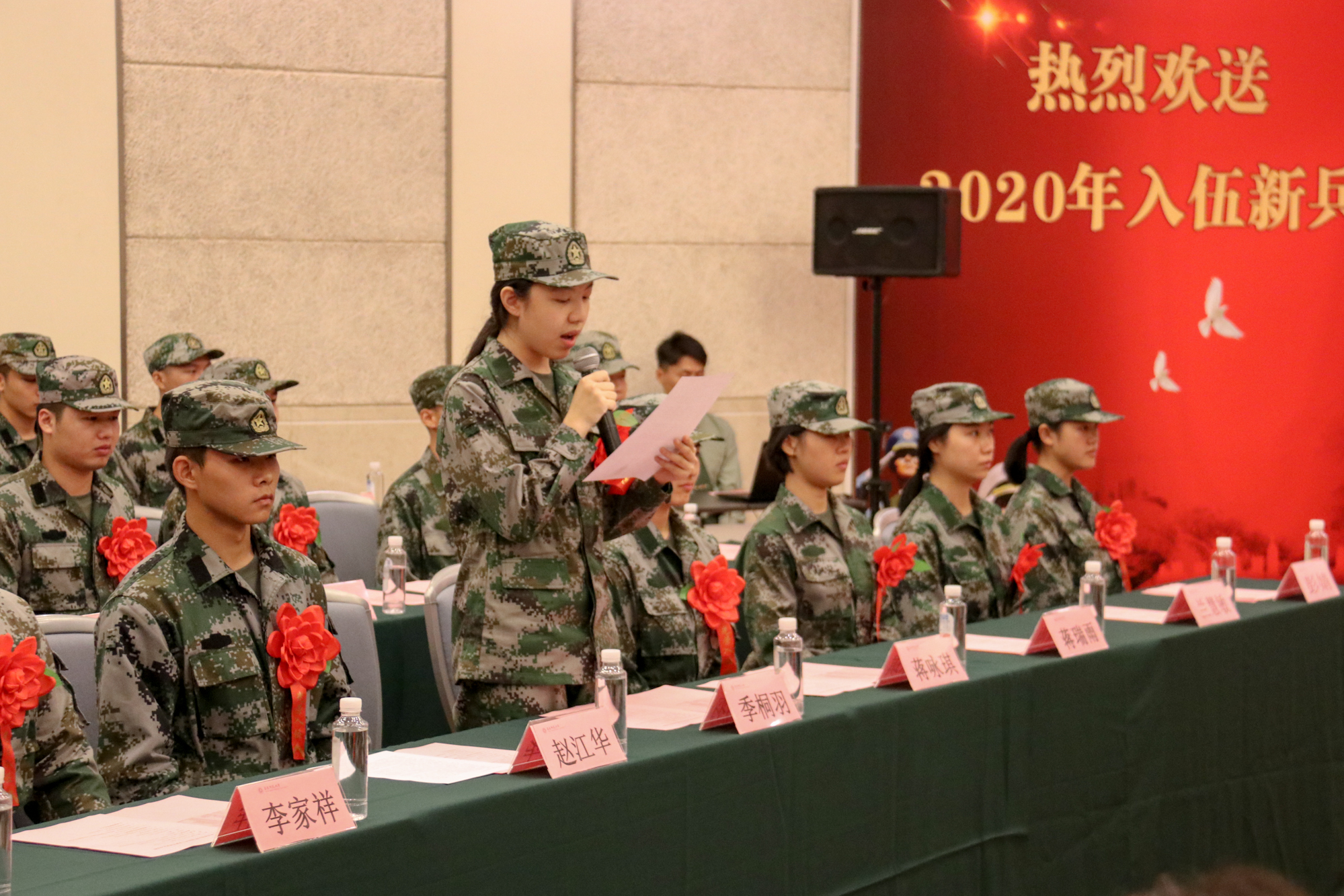 新兵代表通信与电子工程学院季桐羽同学发言