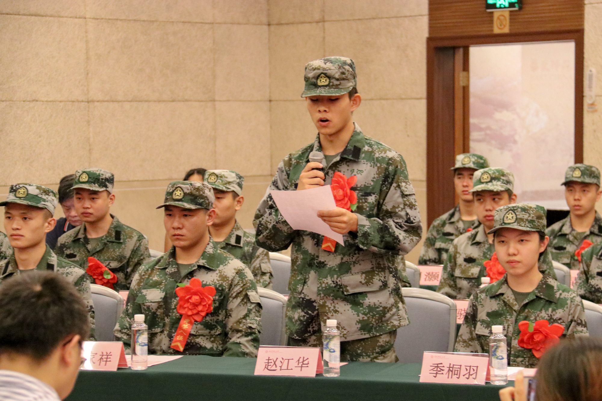 新兵代表体育与健康学院赵江华同学发言