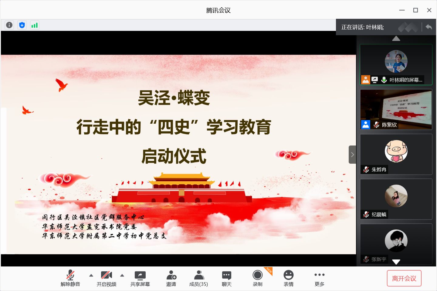 7月20日上午,由闵行区吴泾镇社区党群服务中心、华东师大孟宪承书院党委、华东师大附属第二中学附属初中党总支共同主办的“吴泾·蝶变——行走中的‘四史’学习教育”项目正式启动。闵行区吴泾镇社区党群服务中心、华东师大孟宪承书院、华东师大附属第二中学附属初中的领导嘉宾和师生代表通过线上线下参加本次活动。