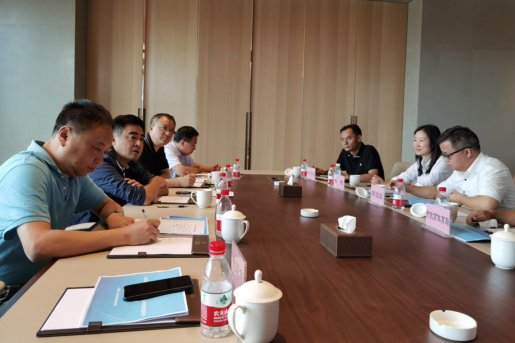 在调研座谈会上,调研团与学校负责人围绕学校开学前筹备工作、未来发展规划、办学特色及其他领域的合作等议题进行了交流讨论。