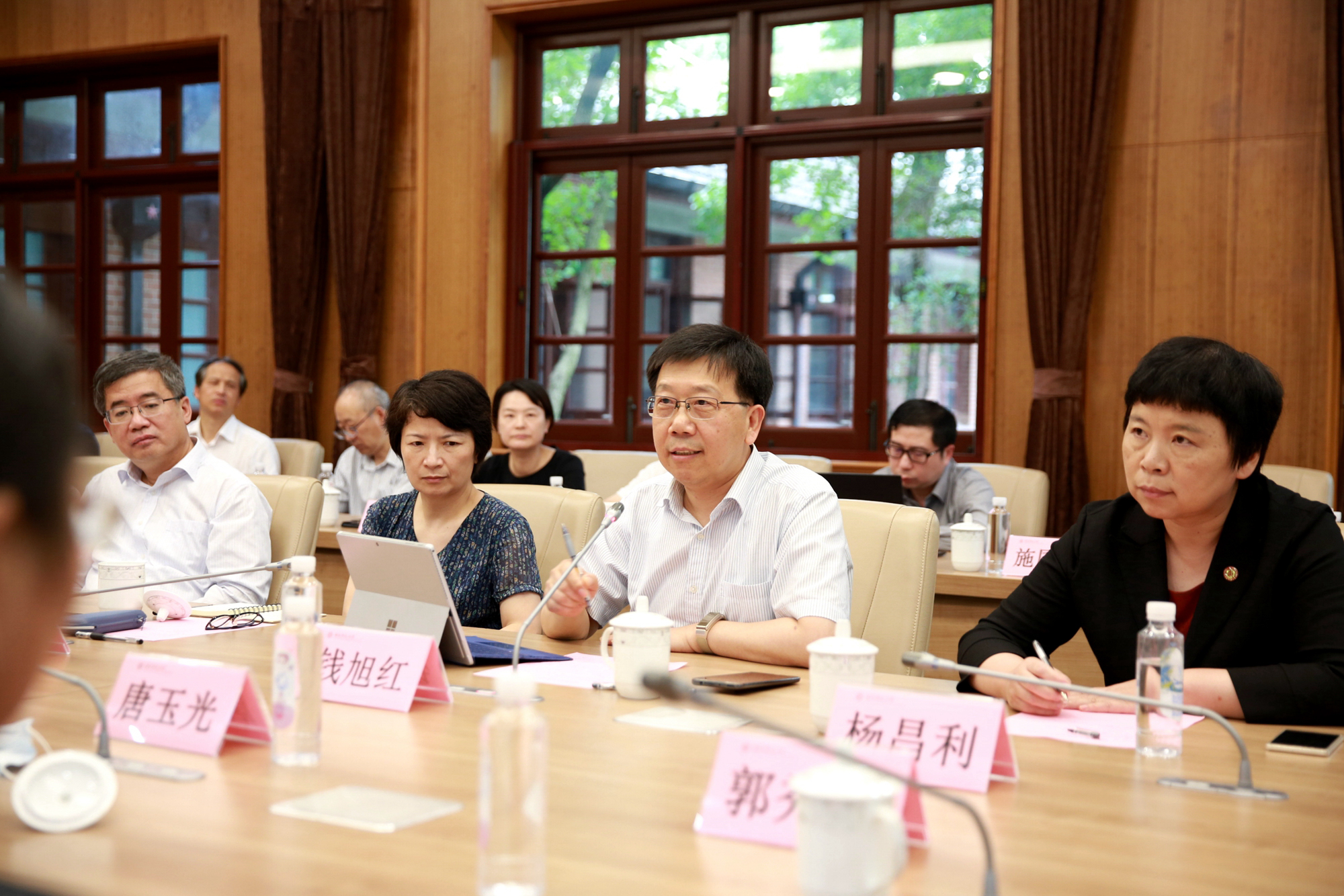 校领导朱民、杨昌利、曹友谊、孙真荣、戴立益,校党委常委顾红亮、程静,教学委员会代表,督导代表,部分学部院系和职能部门负责人约60人参加会议。会议由副校长戴立益主持。