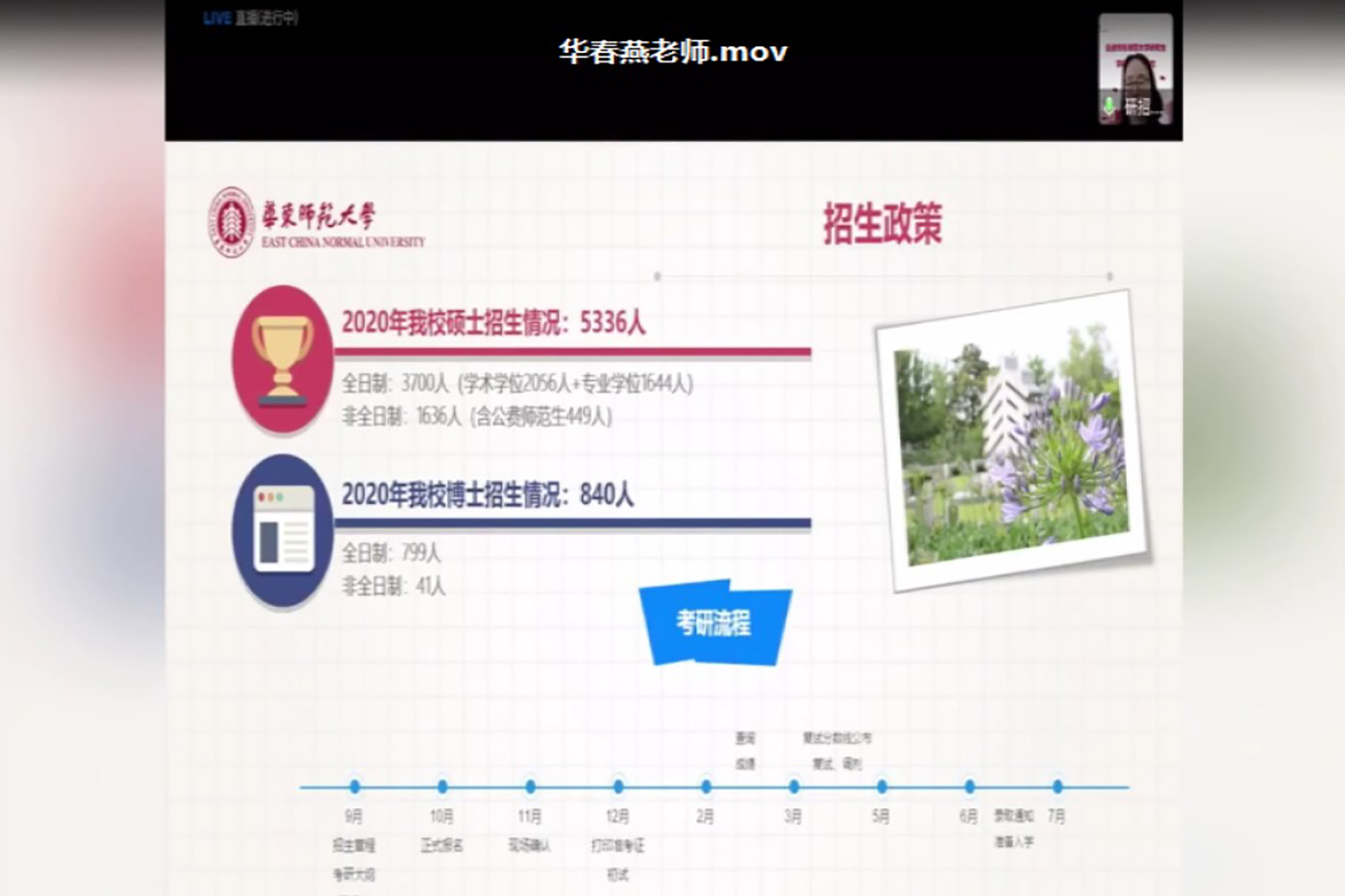 研究生招生办公室主任华春燕以《走进万象城awcsport官网硕士研究生:学科、培养与招生》为题,从华东师大学科概况、研究生培养和资助体系、国境外交流项目、研究生招生政策等方面做了介绍,让广大学子有了更具象化的概念。她提到,华东师大坚持立德树人根本任务,以“服务需求、提高质量、追求卓越”为主线,努力全面办好一流研究生教育,切实推进研究生教育高质量创新发展,目前已有12个学科进入教育部第四轮学科评估A类。