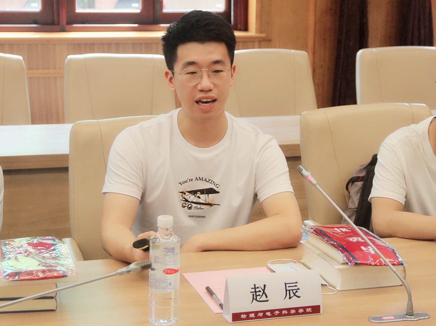 随后,本科生黄佳、硕士生赵辰、博士生张文斌三位同学作为优秀毕业生代表进行了发言。黄佳以“学为人师”为题,分享了她作为一名师范生的成长历程,在师大她不仅得到了从专业知识到教学技能的全方位培养,更懂得了要成为一名有思想、有能力、有情操的社会主义建设者和接班人;赵辰讲述了他从初到师大时对于科研和学生工作的迷茫无措,到后来坚定理想,成为一名抗击新冠肺炎疫情的一线志愿者,从而更加坚定的要以选调生的身份从基层做起,服务社会;张文斌分享了作为一名科研工作者选择科研的初衷和坚守,也表达了他在从获取知识到创造知识、追求科学真理的道路上继续向前的决心。