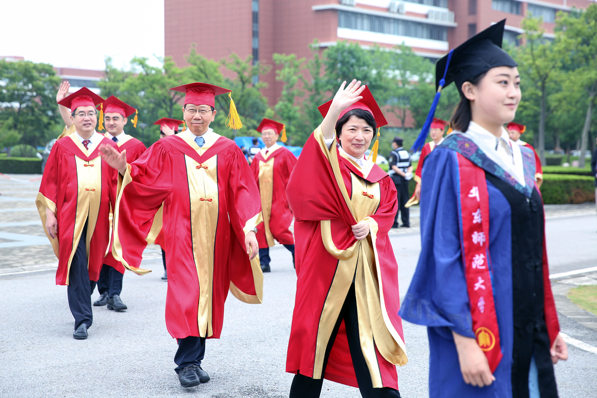 华东师大7000多名毕业生线上线下欢聚一堂。校领导梅兵、钱旭红、朱民、王宏舟、杨昌利、曹友谊、孙真荣、李志斌、周傲英、戴立益,校学术委员会和各专门委员会负责人,校长助理,学部、院系、书院等单位主要负责人,校友代表,教师代表,毕业班辅导员,相关职能部门负责人等出席典礼,一起见证了师大学子完成学业开启人生新征程的重要时刻。