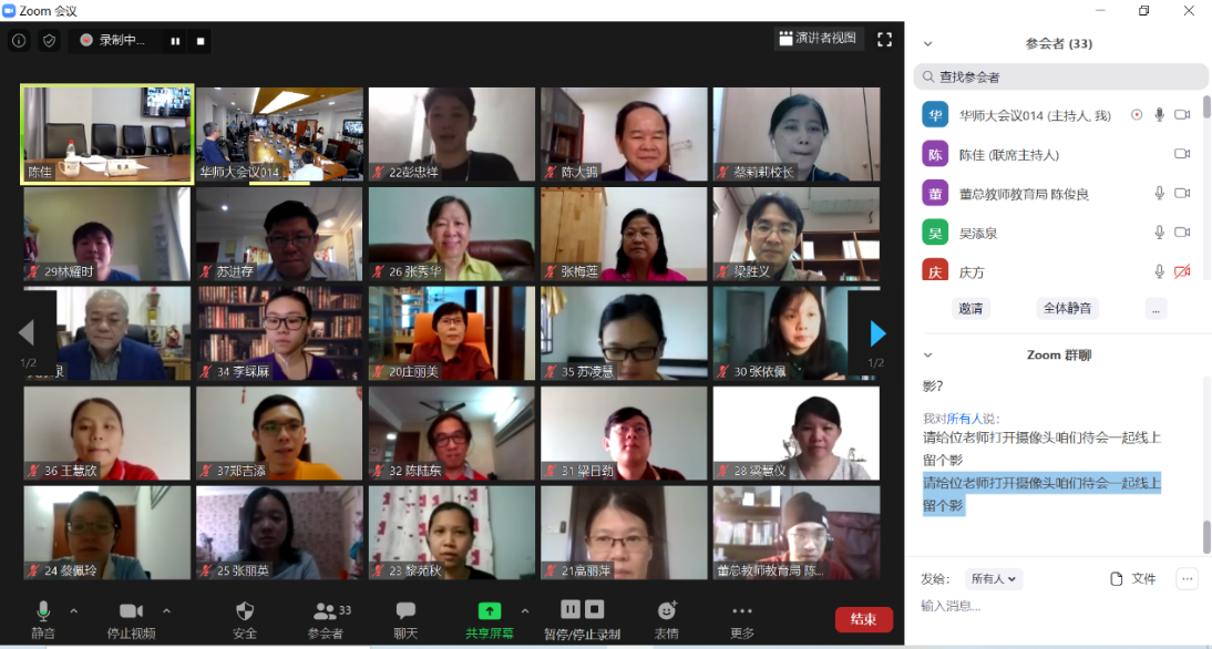 5月25日上午,万象城awcsport官网教育硕士(马来西亚教学点)项目2019级新生开学仪式以线上线下混合的方式举行。仪式由教育学部常务副主任荀渊主持,副校长周傲英、马来西亚中华大会堂总会(华总)总会长吴添泉、马来西亚华校董事联合会总会(董总)主席陈大锦等领导和嘉宾十余人与18位马来西亚研究生新生相会“云端”,共同见证这场别开生面的开学典礼。