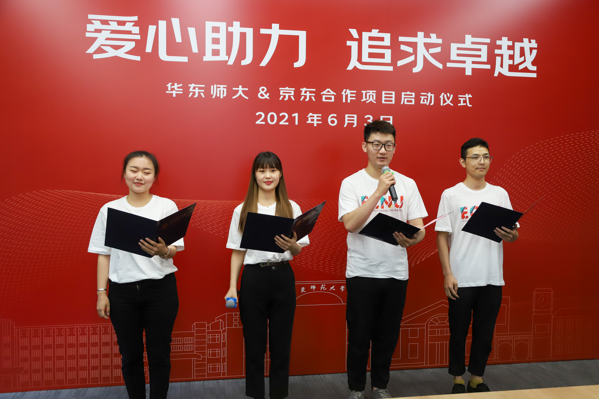 启动仪式最后,我校奖学金获得者和慈善爱心屋的学生代表朗诵原创诗歌《爱心助力、追求卓越》,再次向京东集团、学校表达了衷心的感谢和追求卓越的决心。