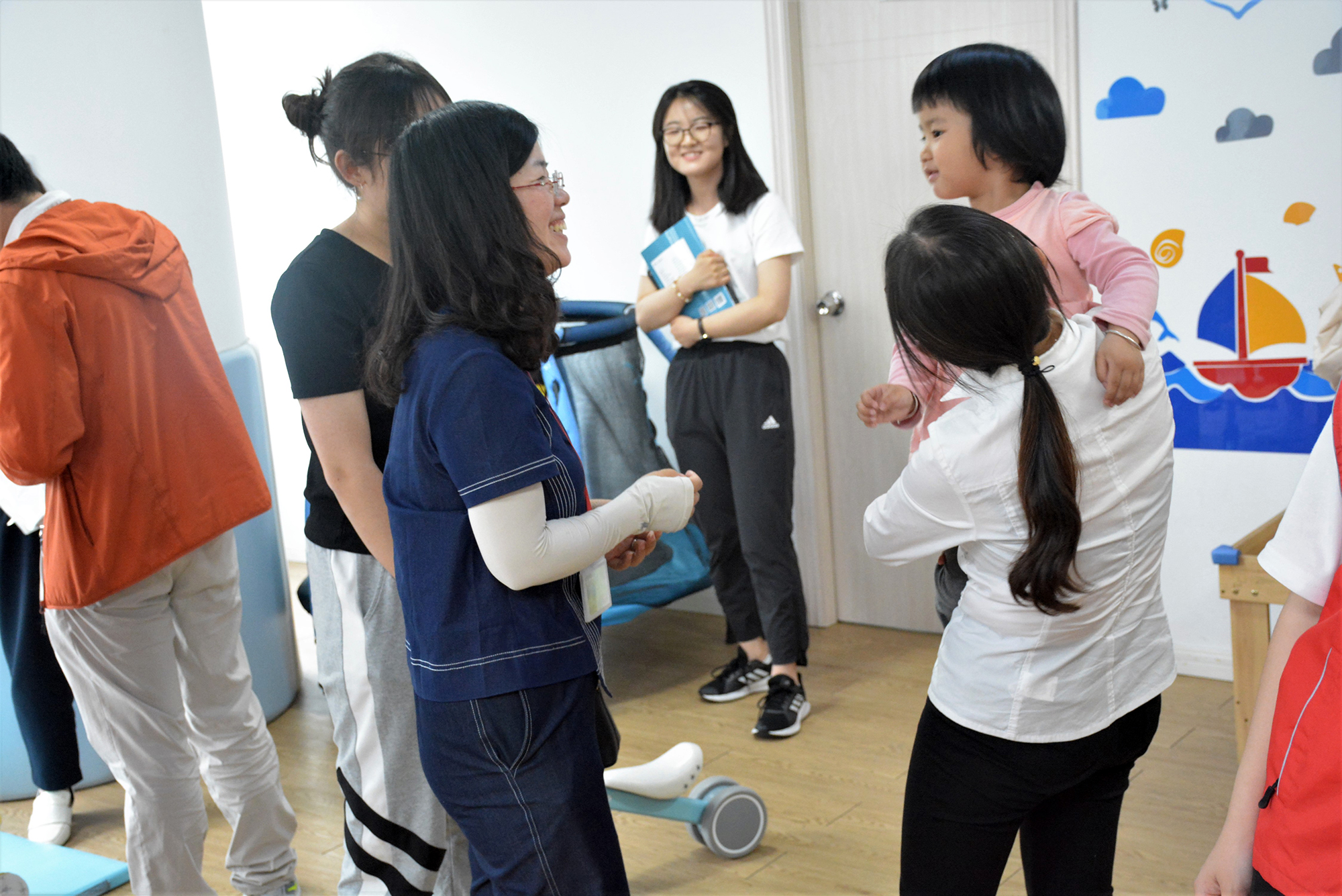 在语之泉儿童发展中心和阿伊屋儿童言语发展中心,同学们在老师和师兄师姐们的带领下集体备课,分组为障碍儿童进行评估,与家长进行沟通。在机构的个训室中,还同步设有专家自主研发的儿童言语语言评估与训练平台,让长期困扰康复人才培养过程中专家督导配给不足的问题得以迎刃而解。而这套由康复科学系科研团队自主研发的智能平台,更多地在康复临床上用于远程专家会诊,打破时空限制,解决康复资源配置不均衡问题。