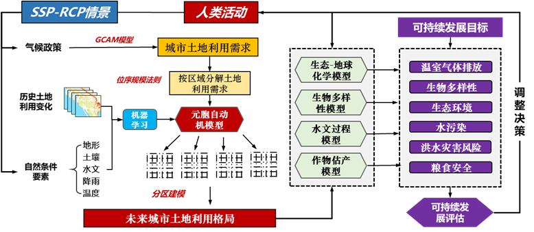 图5:GeoSOS-FLUS模型在未来地球模拟、全球变化分析、可持续发展目标评价、国家一带一路等研究的应用前景