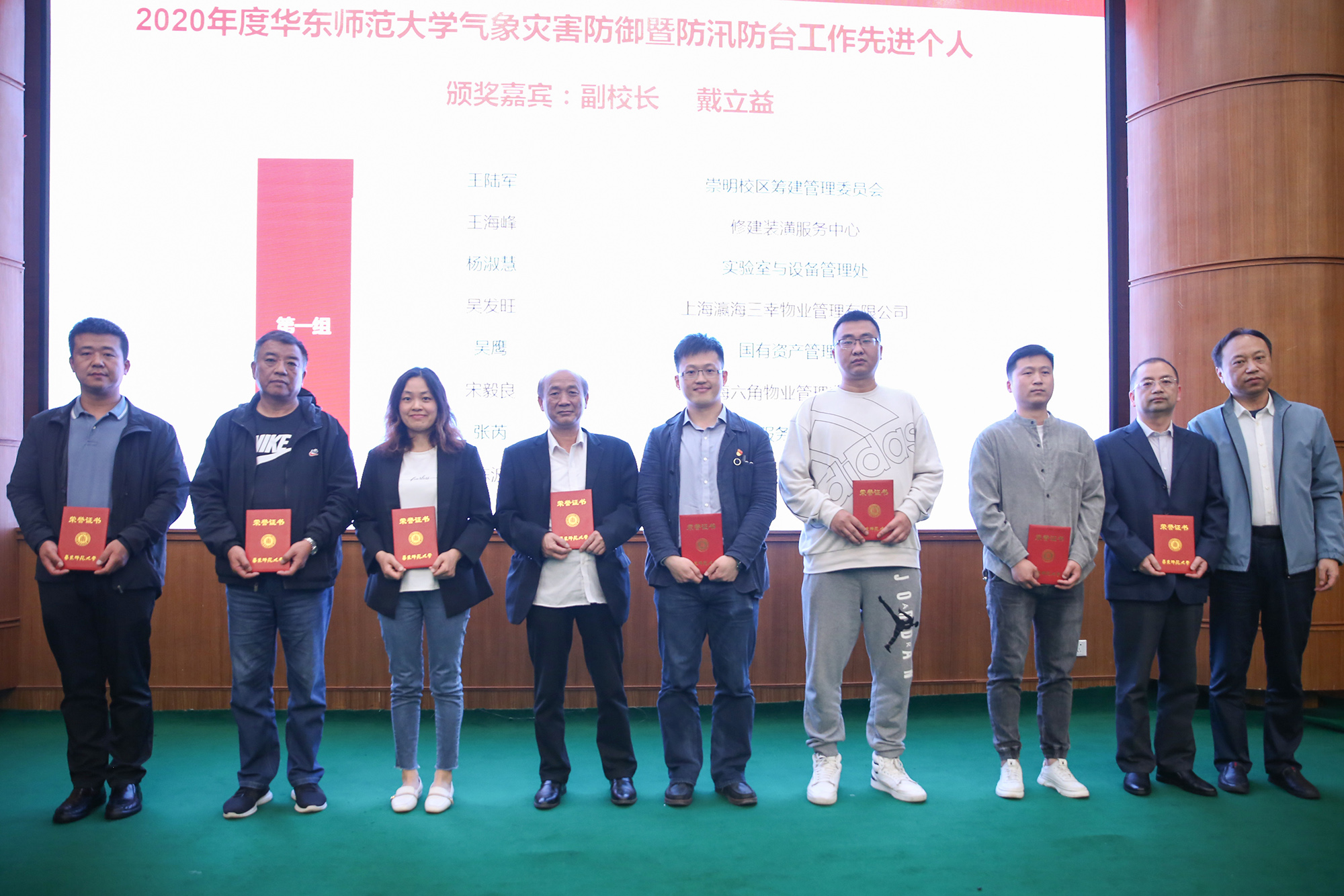 后勤党委书记魏勇宣读了《关于表彰2020年度万象城awcsport官网气象灾害防御暨防汛防台工作先进集体与先进个人的通知》,副校长戴立益先后为15名先进个人和10个先进集体颁发了荣誉证书。精密光谱科学与技术重点实验室和晓晓老师、出版社肖梅兰老师分别作为先进个人代表及先进集体代表交流发言。