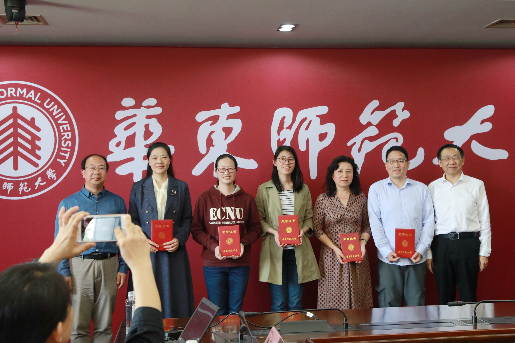 校党委副书记曹友谊为获得表彰的15位先进个人颁发荣誉证书