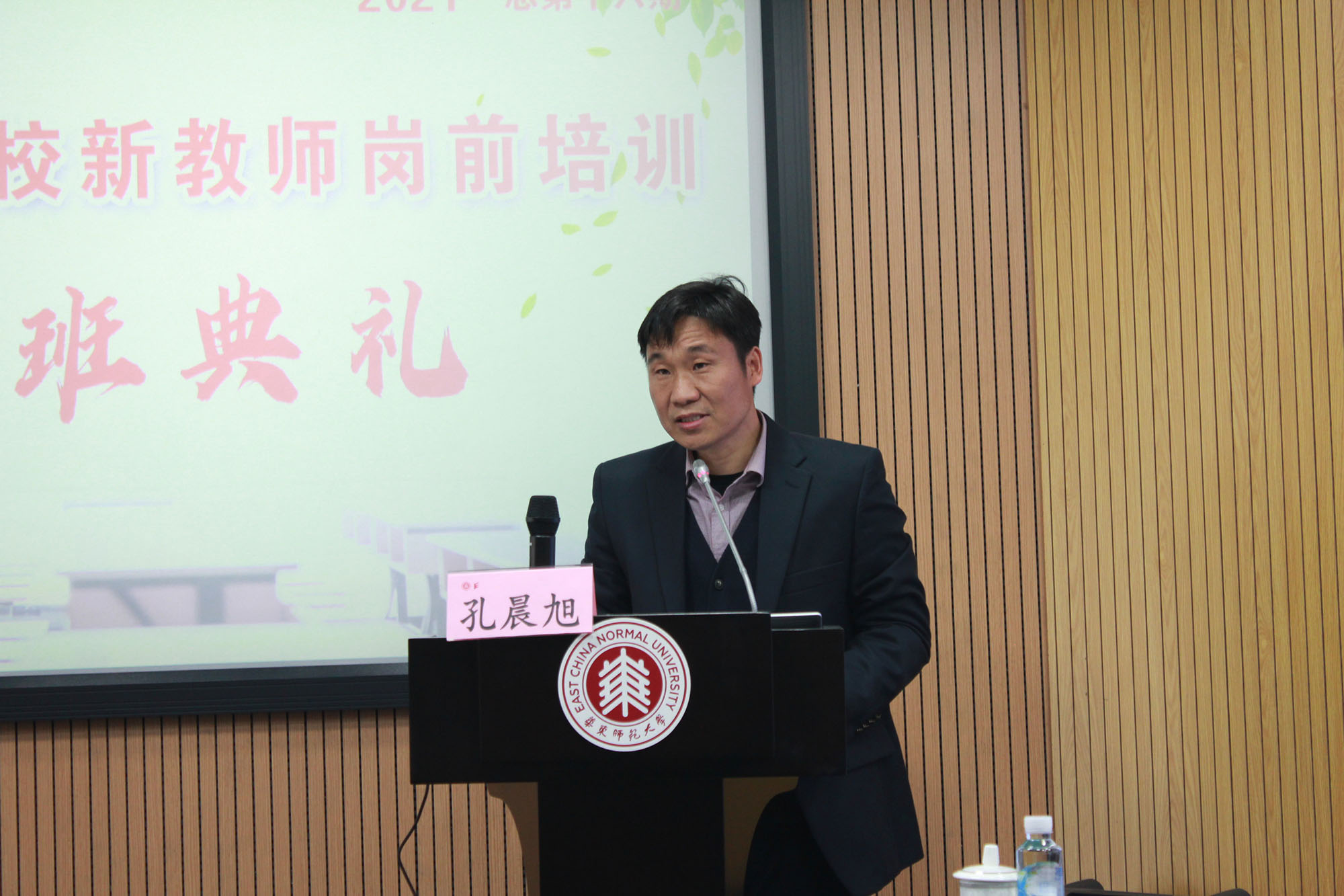 海立信会计金融学院人事处副处长孔晨旭代表选派单位讲话。孔晨旭向本次培训的主办单位、承办单位表示了感谢,并希望参加培训的新教师认真学习,养成良好师德师风,锤炼教学科研技能,提高育德育人能力,快速胜任岗位。