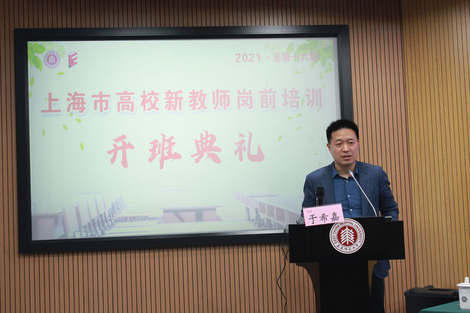 上海市教育委员会人事处副处长于希嘉代表主办方向参加本次培训的新教师表示祝贺,并要求新教师们严格遵守培训纪律,希望新教师们通过参加培训,掌握教学理论与方法,提高教育教学能力,为站上讲台打下坚实基础,走好高校教师起点之路。