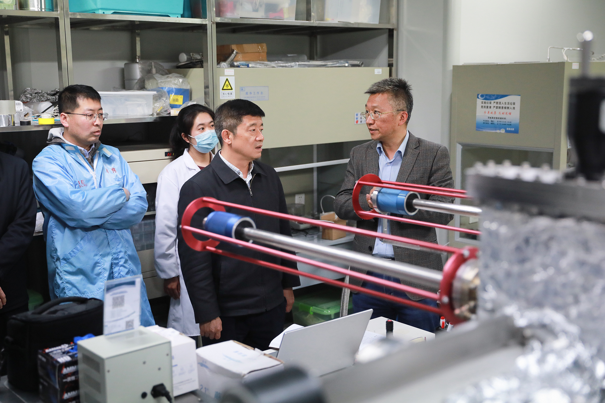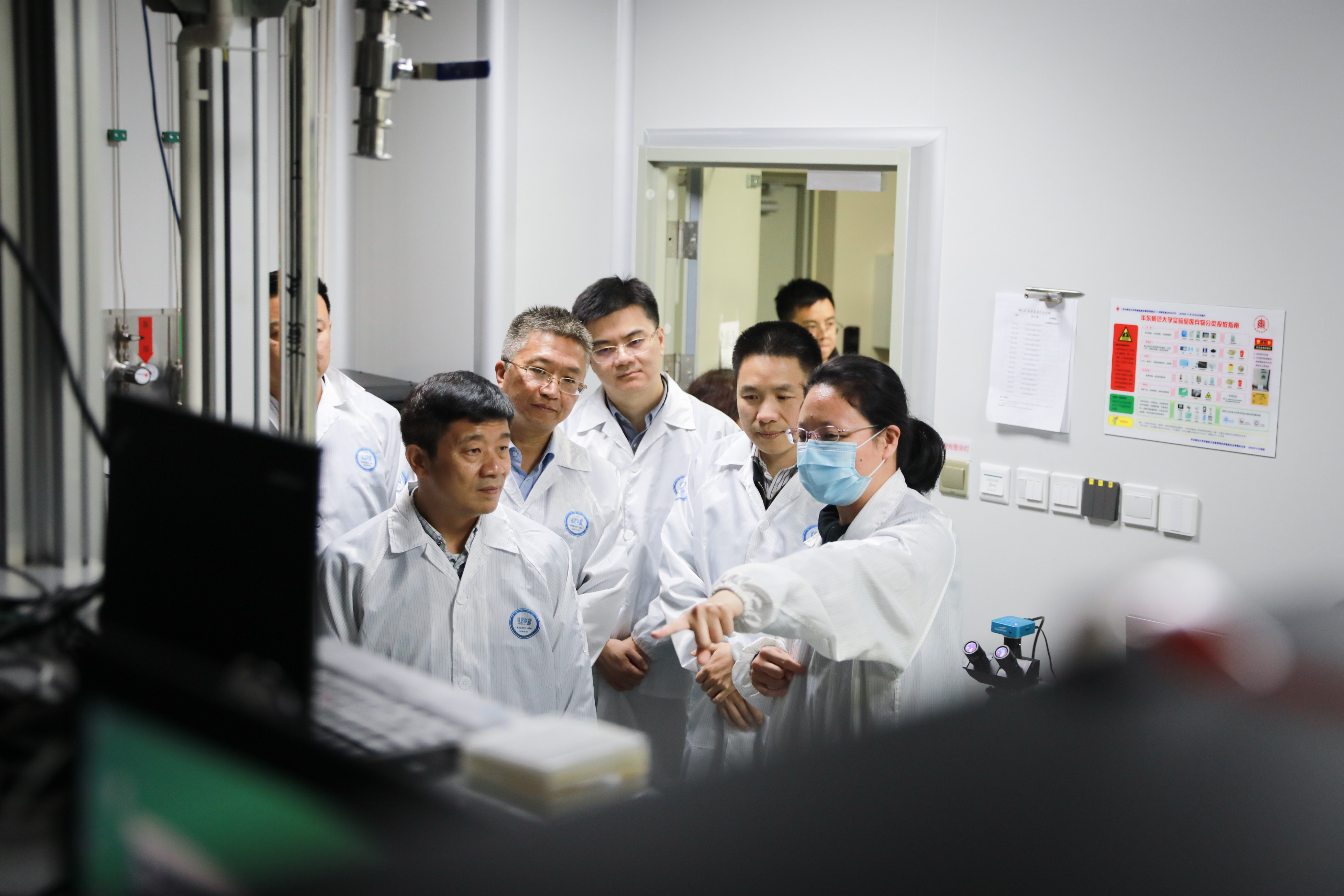 调研座谈会前,蔡忠一行考察了极化材料与器件教育部重点实验室、精密光谱科学与技术国家重点实验室、社会主义历史与文献研究院。