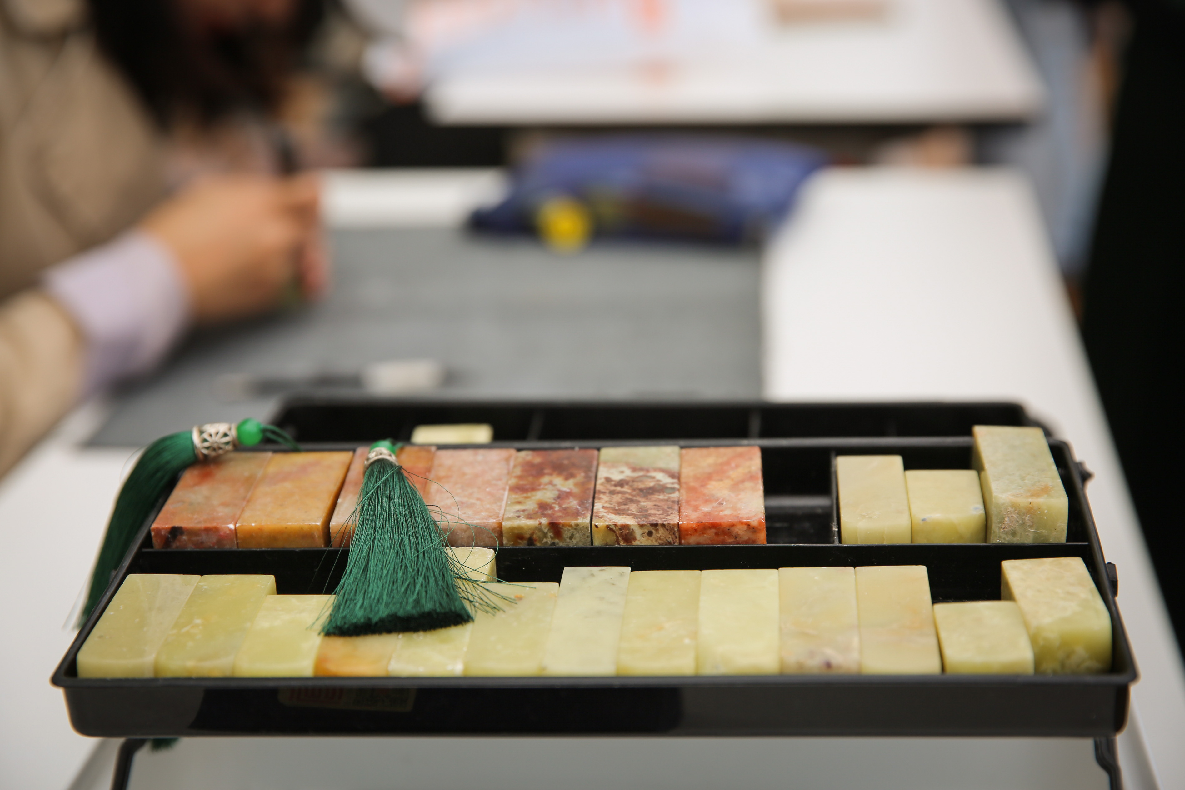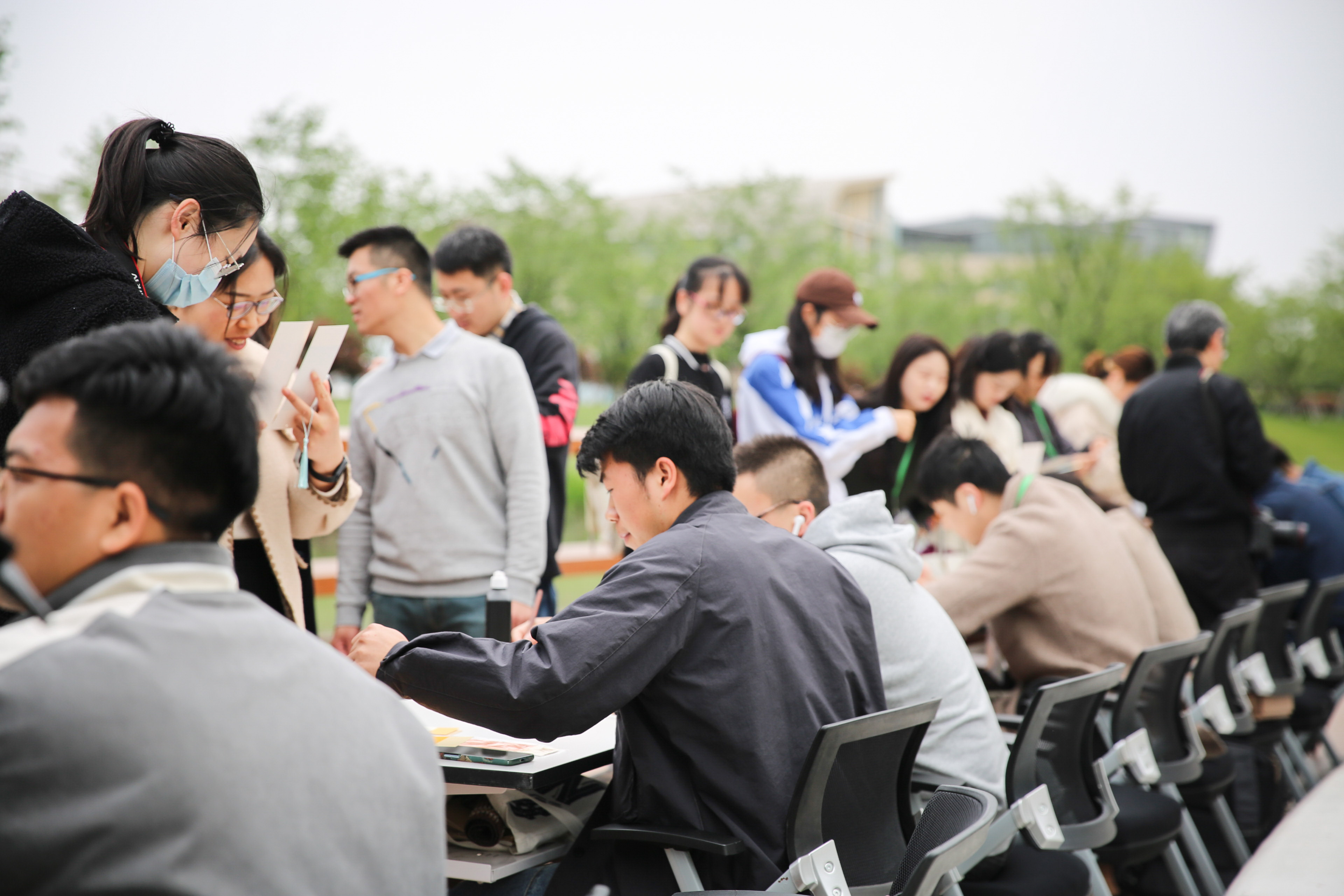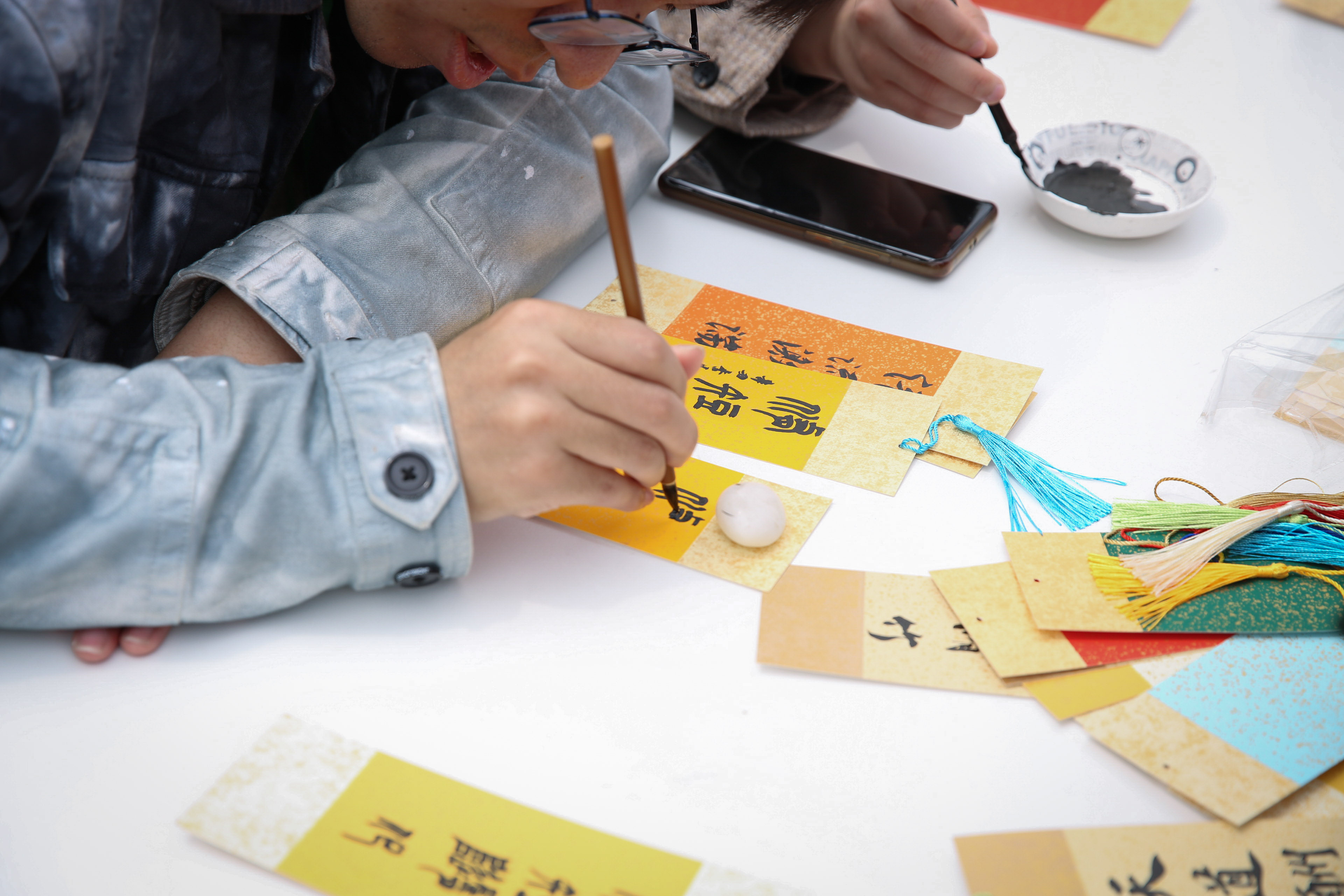 另外,为了能够让书法篆刻艺术感染到校园里的每一位同学,现场特别设置了书写兰亭区和篆刻体验区,喜欢书法的同学可获得“兰亭”主题活动书签,爱好篆刻的同学可进行尝试体验,有专业的老师和同学进行辅导,让篆刻成为大家了解和接纳传统文化的切实方式。有趣的是,篆刻还作为载体来回馈踊跃参加本次活动的观众,同学们只要在活动现场打卡,就有可能获得由书法篆刻专业同学量身定制的姓名印章,此活动吸引了众多学生驻足参与,增添了此次活动的影响力和传播度。