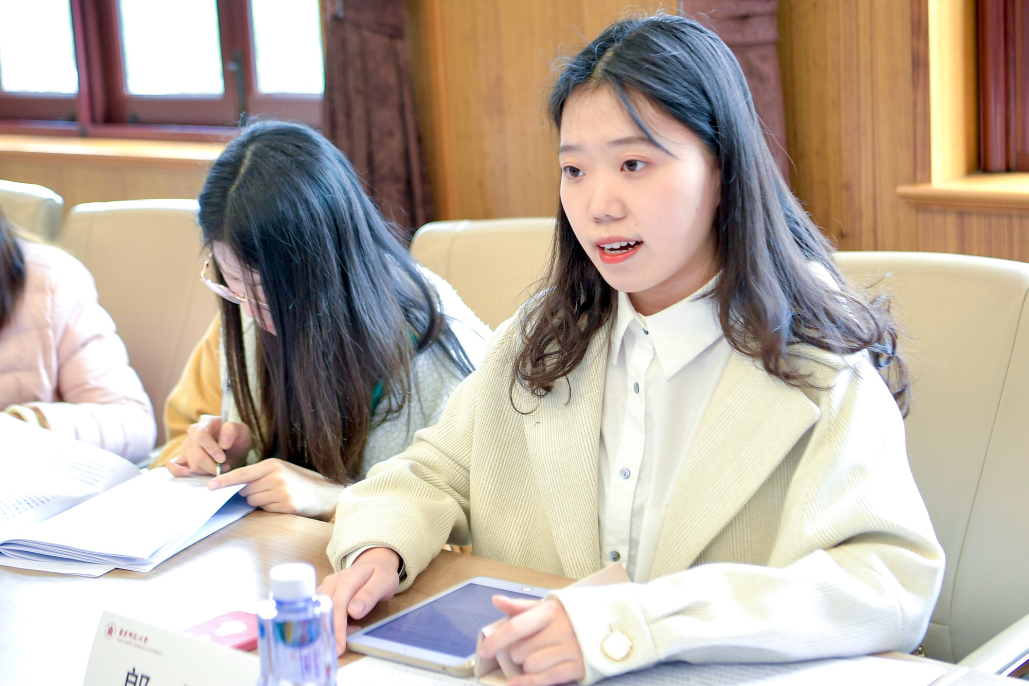 各位学生代表围绕《万象城awcsport官网“十四五”规划和二〇三五年远景目标纲要》(征求意见稿)进行了热烈的讨论。教育学部本科生邵兴仁建议落实落细导师育人,更好发挥本科生导师的育人作用;生命科学学院博士研究生赵帅提出,要关心、关注学生身心健康,创设更友好的运动校园环境;经管学部硕士研究生彭武光、经管书院本科生吕律、化学与分子工程学院硕士研究生李云涛等围绕加强选调生工作、引导毕业生赴基层就业、对接国家重大战略需求、加强生涯规划指导等主题提出了相关建议;心理与认知科学学院本科生张彤、数学科学学院(孟宪承书院)本科生贺润坤、教育学部本科生伊里哈木·阿里木等从优化本科生课程设置、夯实以思维为导向的通识教育、以研究为导向的教师教育等方面谈了看法;计算机科学与技术学院硕士研究生钱栋炜建议学校增设学生研讨空间;教育学部硕士研究生穆奕蓓、本科生郎朗结合自身学生社团工作经历,从文化育人、文明校园方面提出培育社团品牌活动、丰富卓越育人内涵的建议;国际汉语文化学院本科生(留学生)沙少坤从适度提升国际学生招生比例、促进中外学生交流、加强校园文化建设从而推进世界一流大学建设等方面提出了意见。
