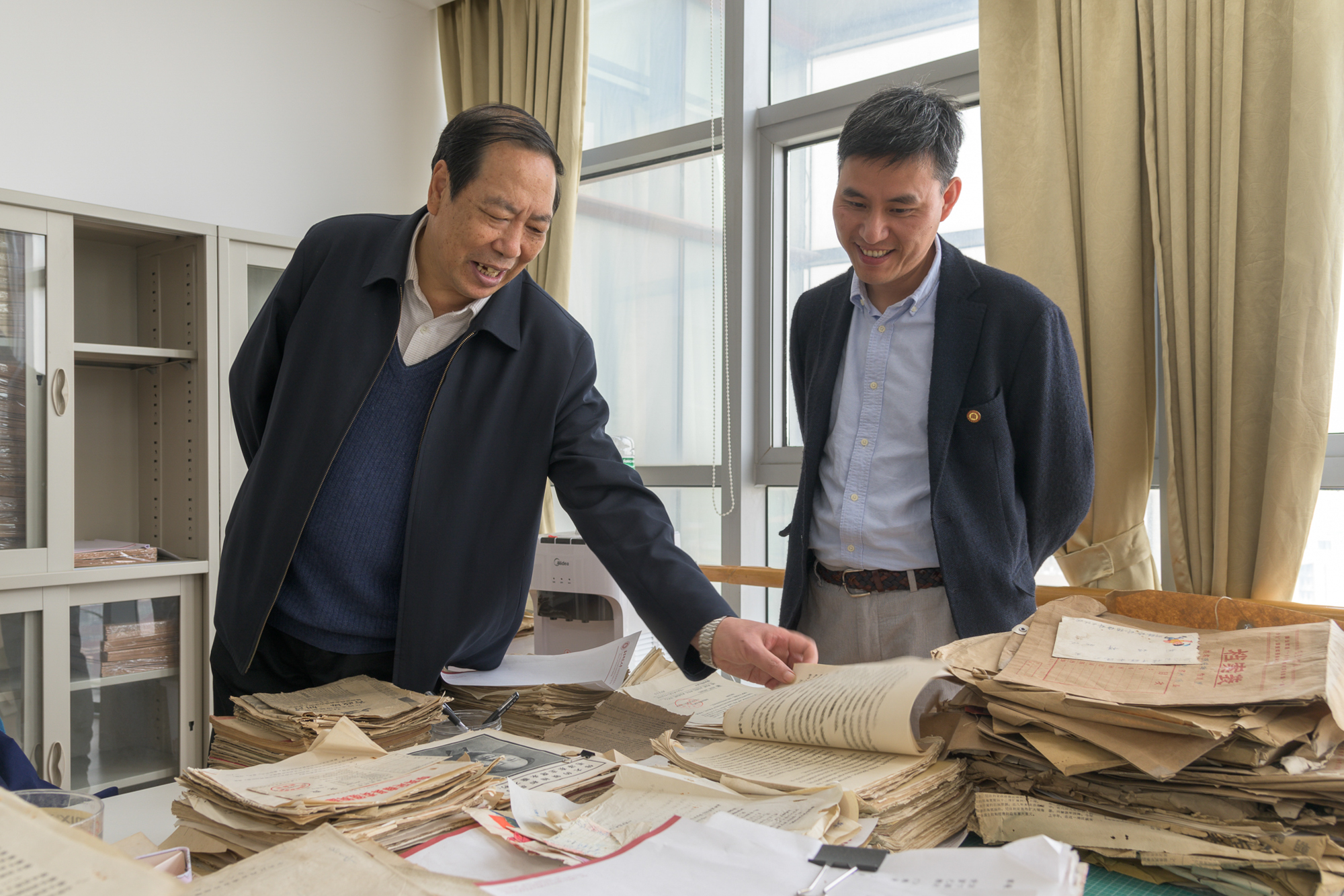 在社会主义历史与文献研究院,吴道槐一行参观了特色文献陈列室、纸质文献分类室、图书文献室。教务处处长、社会主义历史与文献研究院院长孟钟捷向调研组介绍了社研院的建设初衷和目标,就纸质文献的搜集和保护、电子文献数据库建设以及部分重要文献、特色馆藏自印本作了重点讲解。吴道槐肯定了社研院的工作,认为史料收集是当代史研究的基础,是学术发展和创新的动力,希望研究人员继续坚持基础学科研究,做好电子文献数据库建设。