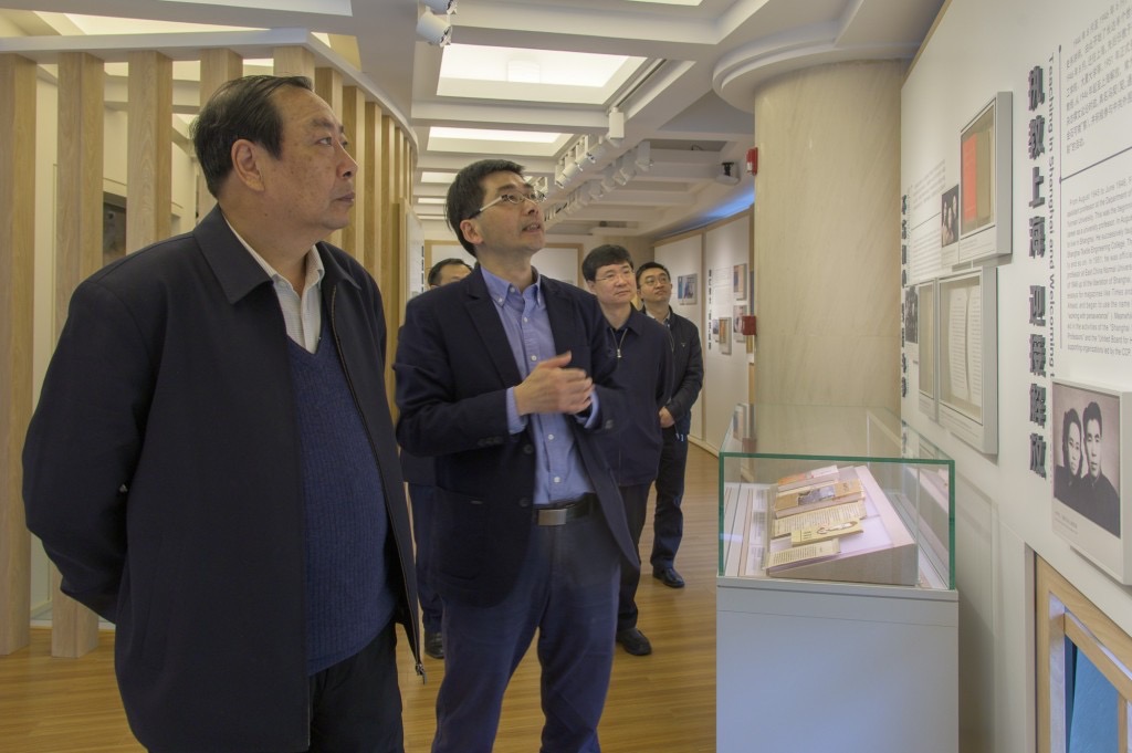随后,吴道槐一行来到闵行校区,在校党委副书记、纪委书记曹友谊的陪同下参观了冯契学术成就陈列室、社会主义历史与文献研究院,在校党委常委、副校长孙真荣的陪同下参观了精密光谱科学与技术国家重点实验室。