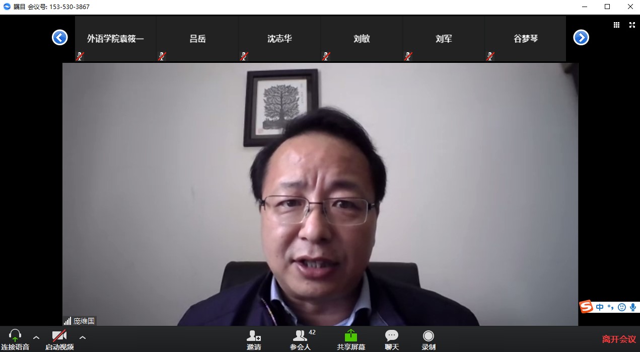 计算机科学与技术群群主周爱民,地理学群群主刘敏,统计学群群主张日权,学科群管理员、科技处副处长饶昇苹,生态学群群主陈小勇,心理学群群主庞维国,海洋科学群群主高抒,学科群群管理员、校学术委员会秘书长唐玉光,社会学群群主文军,哲学群群主陈立新等先后交流发言。大家都认为,将网格化管理理念引入到高校管理工作中是一项创新之举,不仅满足了疫情期间工作的实际需求,同时也吻合管理未来的发展方向。多位老师分享了自己在网格群中的参与情况与收获体会,例如心理学院庞维国老师通过网格群平台与法学院吴泽勇老师极速跨学科牵手,共同参与了与复旦大学联合申报科技部重大专项的工作;统计学院张日权老师在网格群中向多个学科分享统计学科大数据分析咨询平台及开展合作的情况;本科生教学协作群通过线上沟通解决了线上教学问题等。同时,各位群主和管理员还针对当前该项制度中存在的不足提出了改进建议,例如更为清晰地界定线上网格群的工作范畴、补充与群定位关联密切的教职工、培养和增加活跃的学者、结合学科发展定期发布讨论主题、线上交流与线下交流结合、建立群主和管理员的交流群等等。
