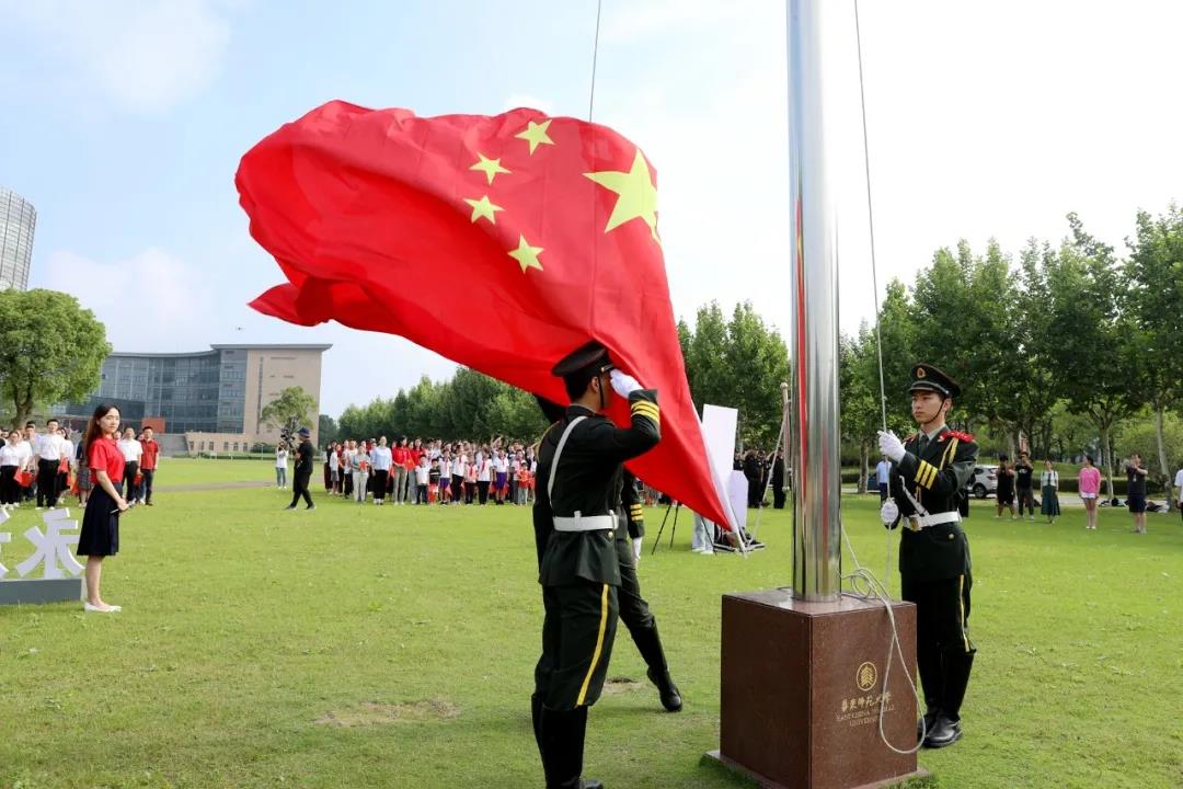 华东师大师生热烈庆祝中国共产党成立100周年。上午7点半,师生代表约百余人在闵行校区图书馆前大草坪参加升旗仪式,庆祝建党百年。庄严的升旗仪式后,师生党员们面向国旗,齐唱《没有共产党就没有新中国》,不忘初心、砥砺前行。