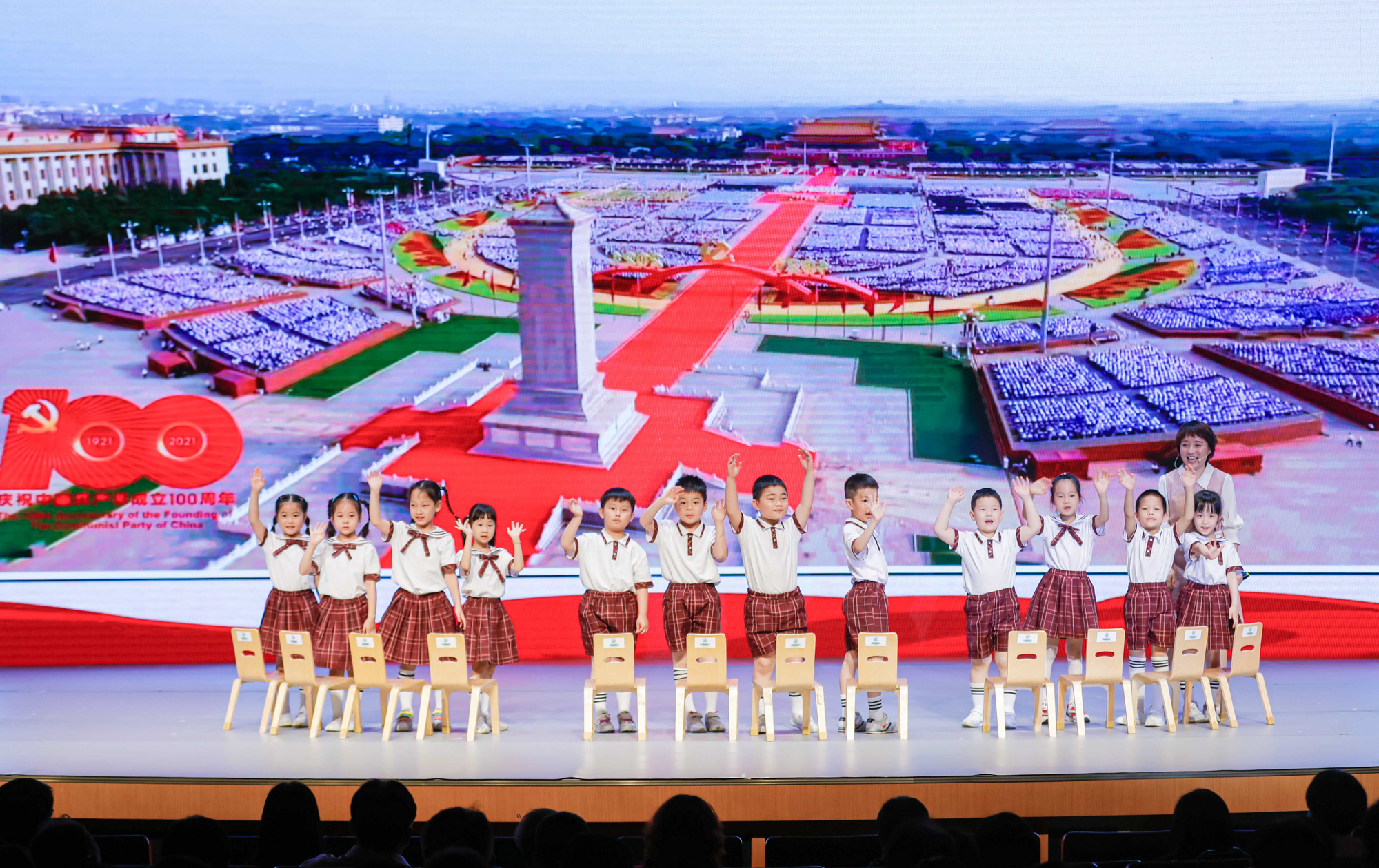 在教学观摩正式开始前,来自上海市荷花池幼儿园的李文娟老师,以寓教于乐的方式,带领幼儿园的小朋友在游戏中感知了不起的中国,了解中国共产党的伟大,把红色的种子种入孩子们幼小的心田。