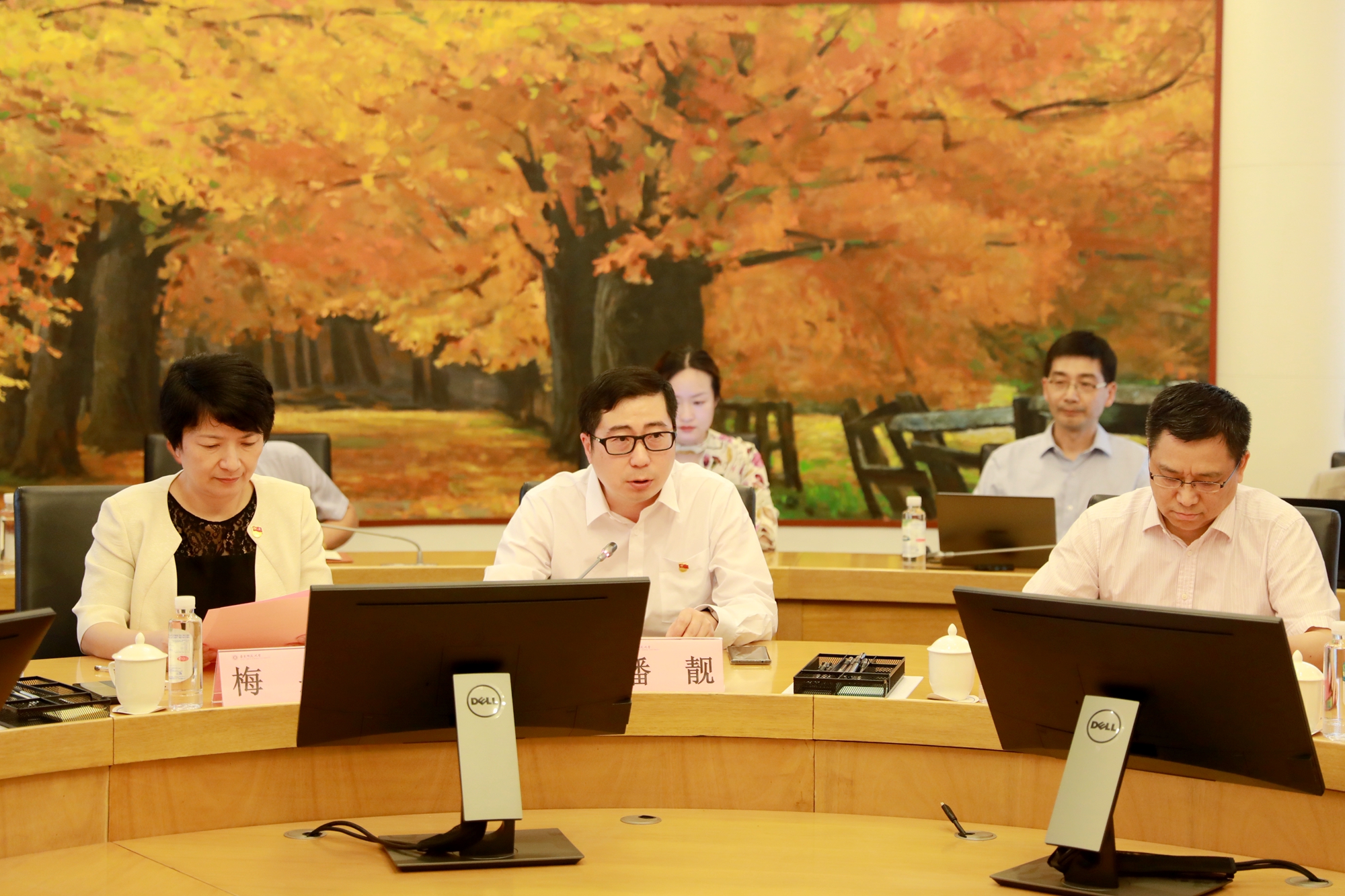 学校办党支部书记、学校办主任潘靓汇报支部党史学习教育组织开展情况