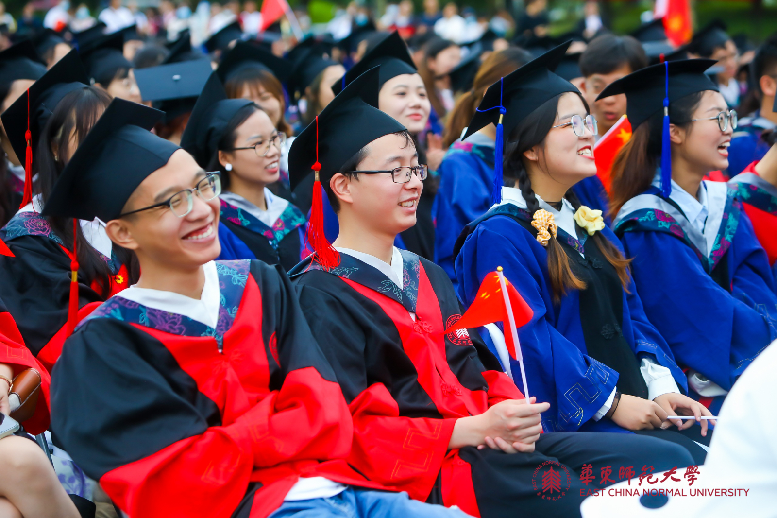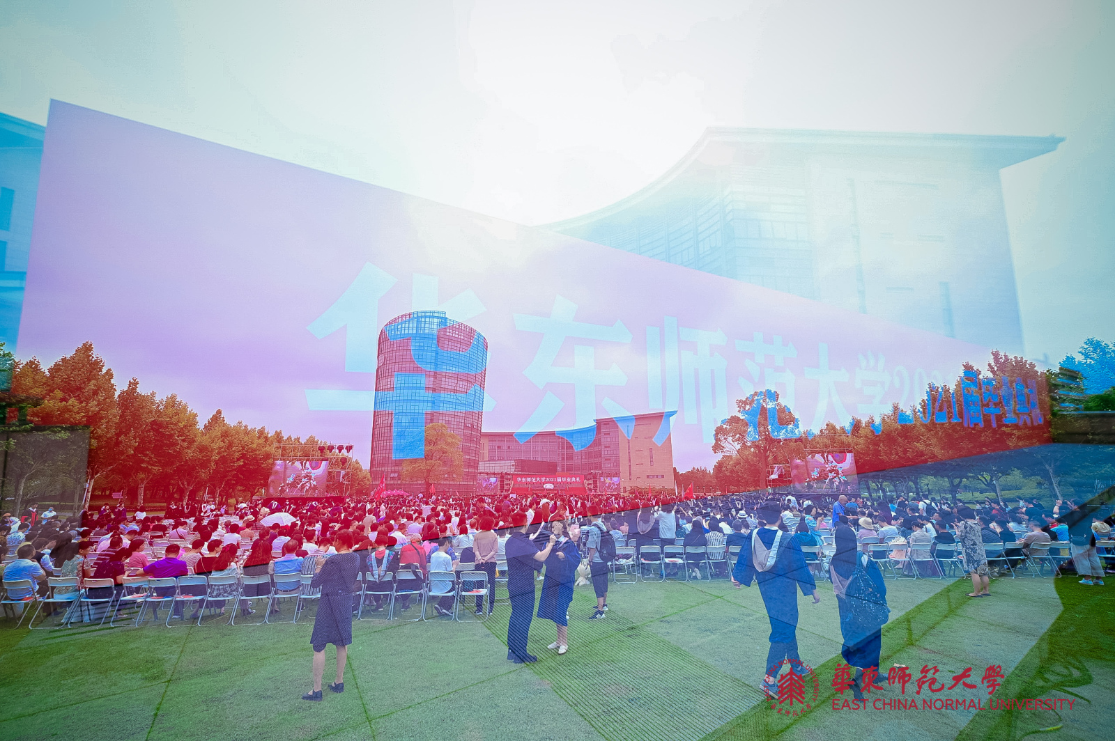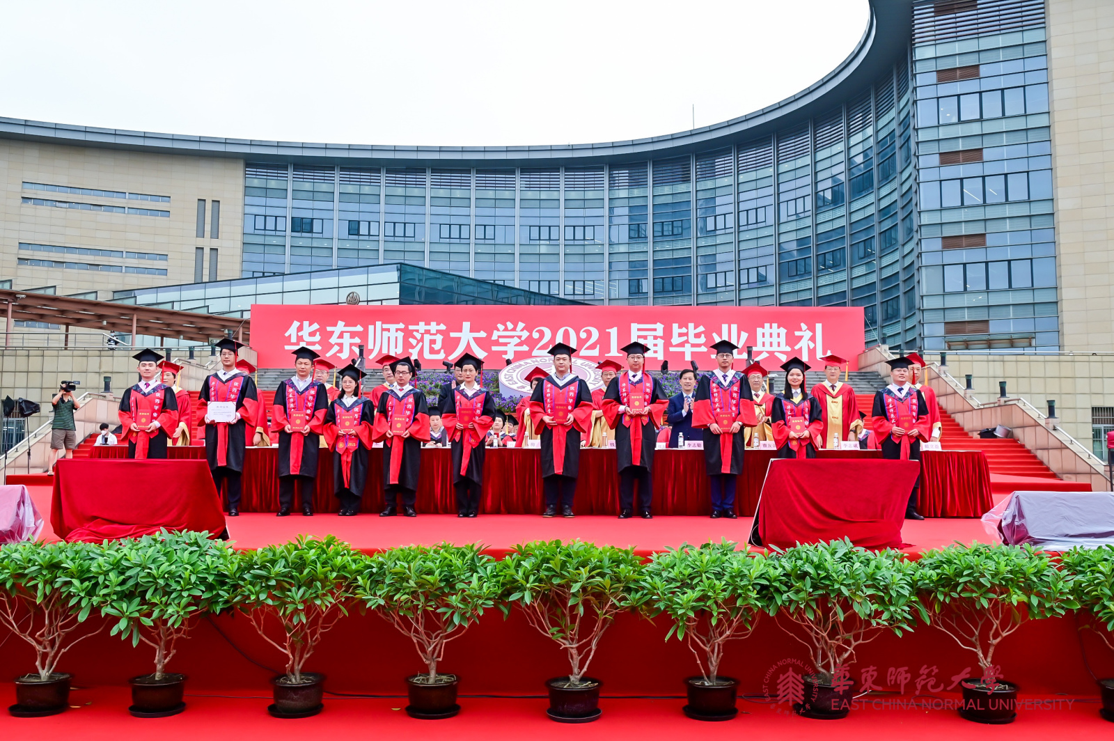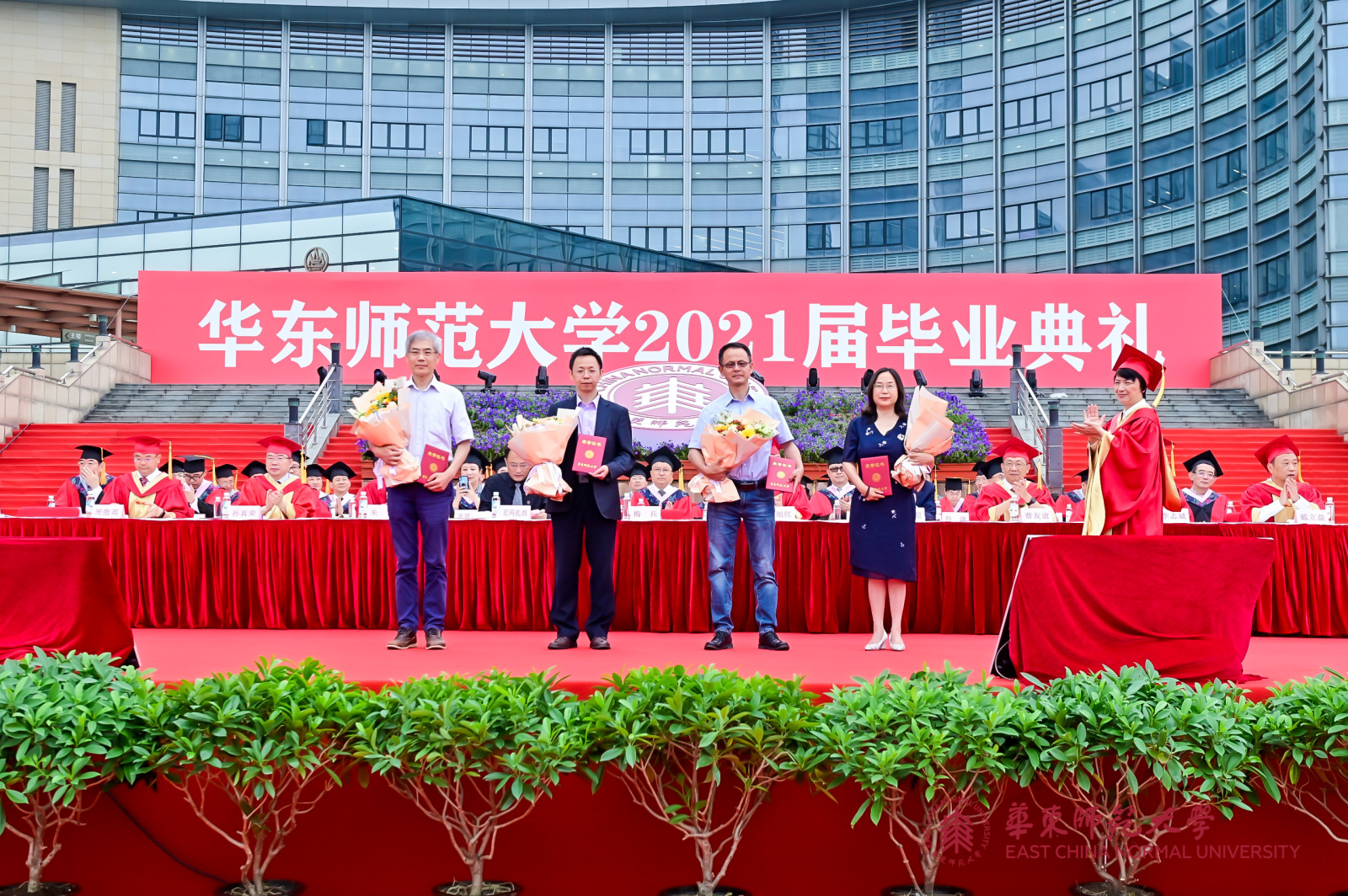 华东师大8000多名毕业生线上线下欢聚一堂。校领导梅兵、钱旭红、朱民、杨昌利、曹友谊、孙真荣、李志斌、周傲英、戴立益,校长助理,校学术委员会和各专门委员会负责人,学部、院系、书院主要负责人,校友代表,教师代表,毕业班辅导员,相关职能部门负责人等出席典礼,一起见证了师大学子完成学业开启人生新征程的重要时刻。