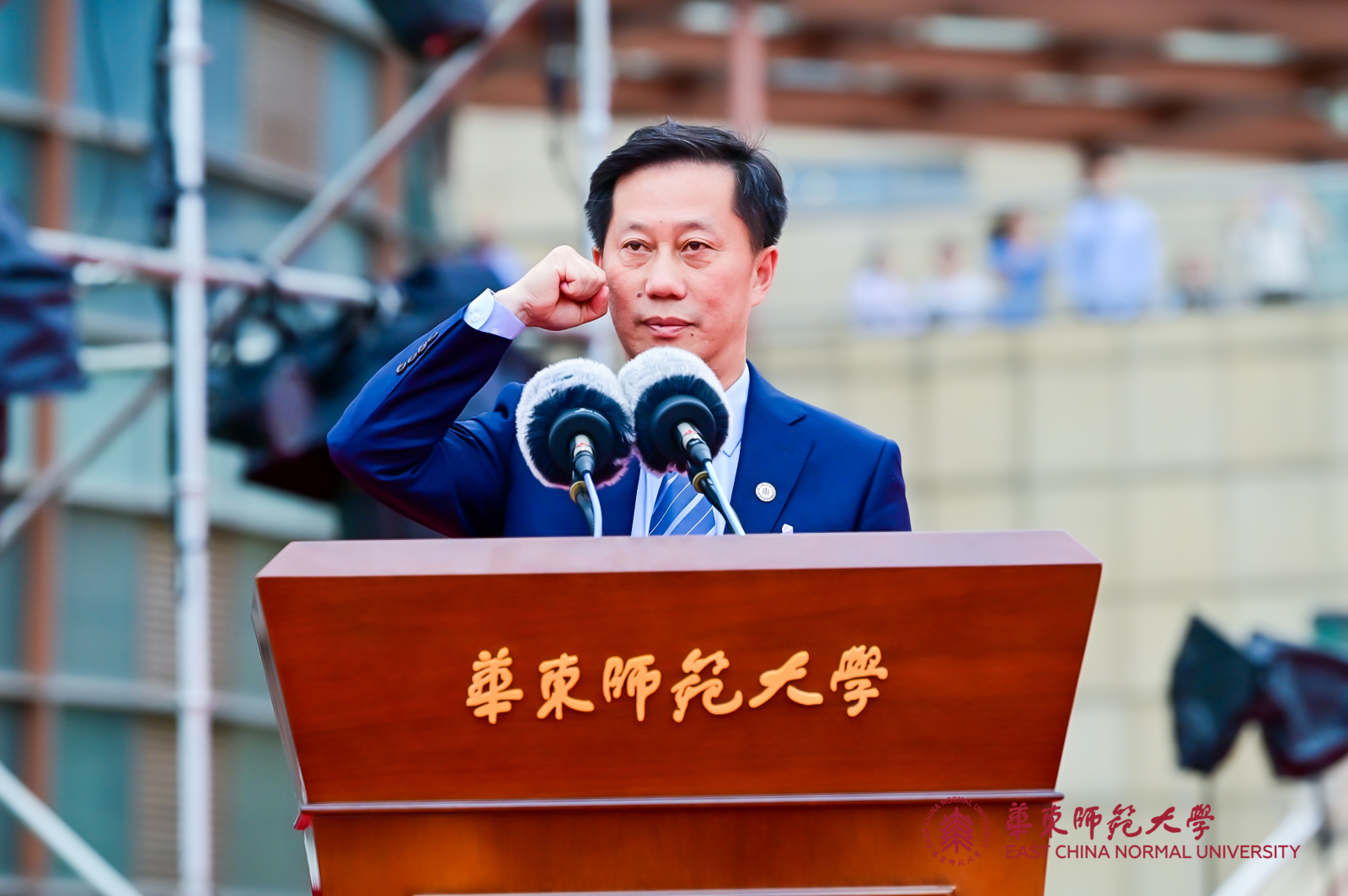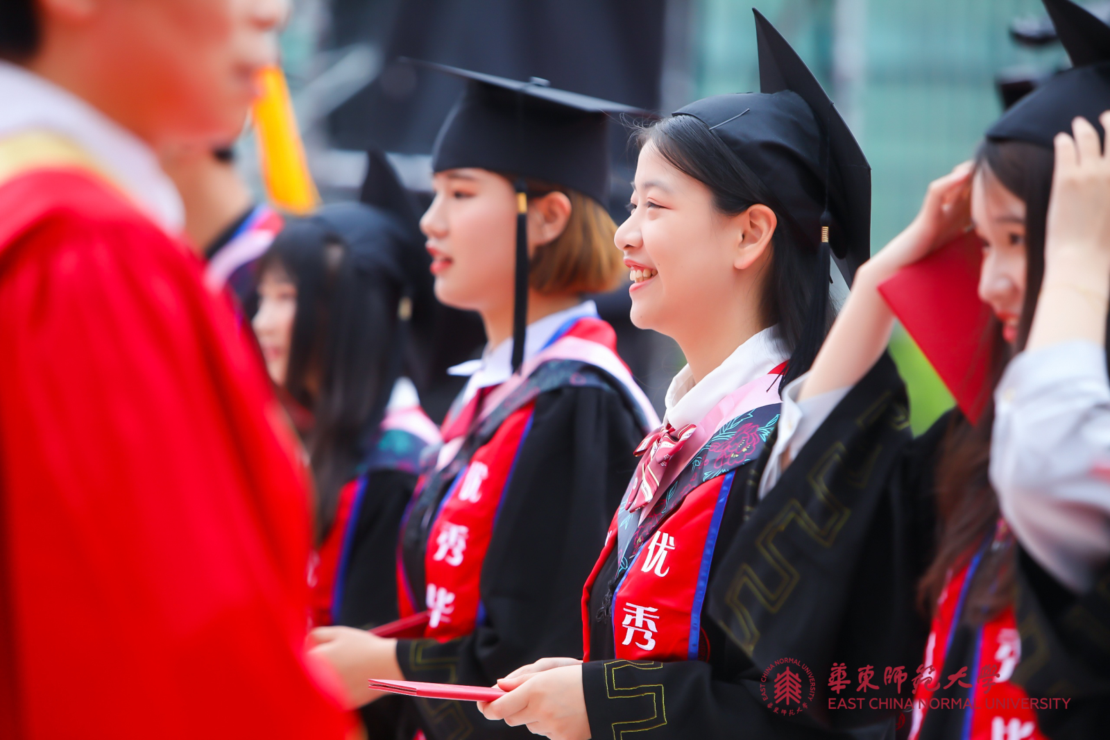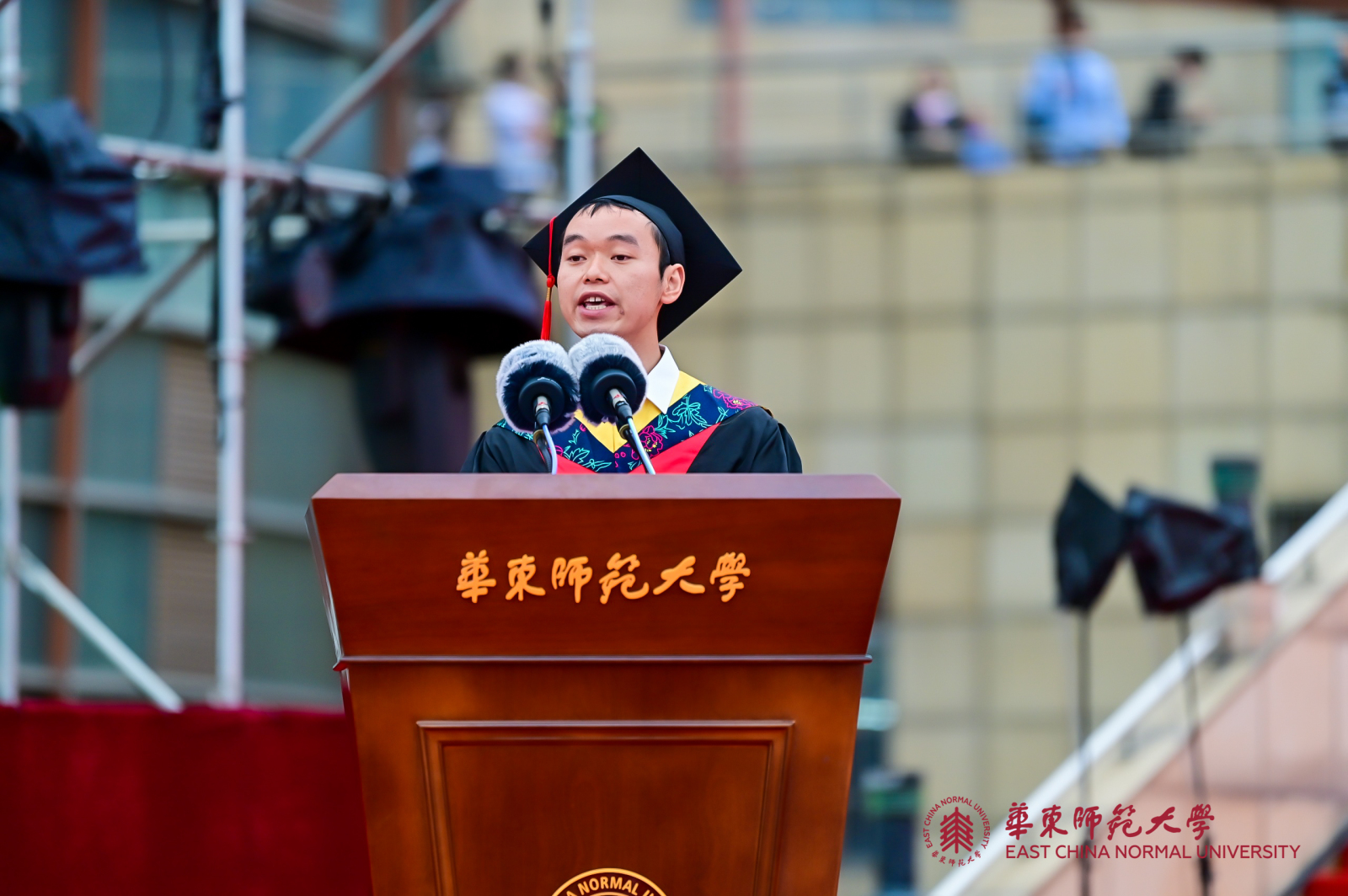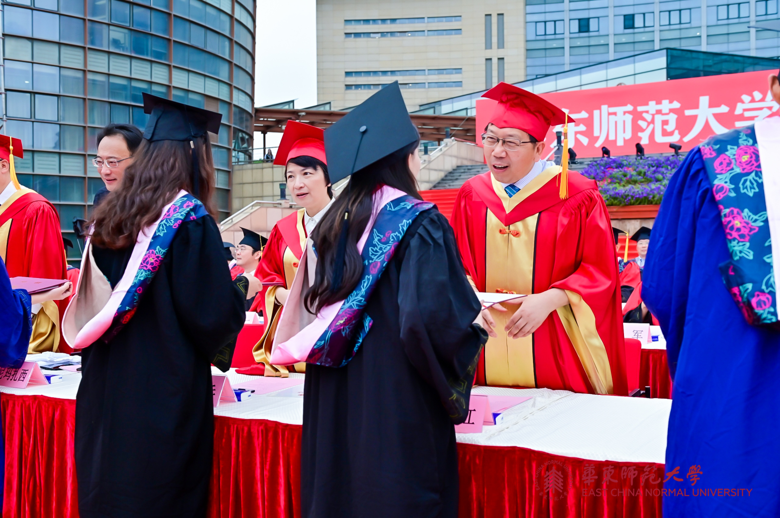 华东师大8000多名毕业生线上线下欢聚一堂。校领导梅兵、钱旭红、朱民、杨昌利、曹友谊、孙真荣、李志斌、周傲英、戴立益,校长助理,校学术委员会和各专门委员会负责人,学部、院系、书院主要负责人,校友代表,教师代表,毕业班辅导员,相关职能部门负责人等出席典礼,一起见证了师大学子完成学业开启人生新征程的重要时刻。