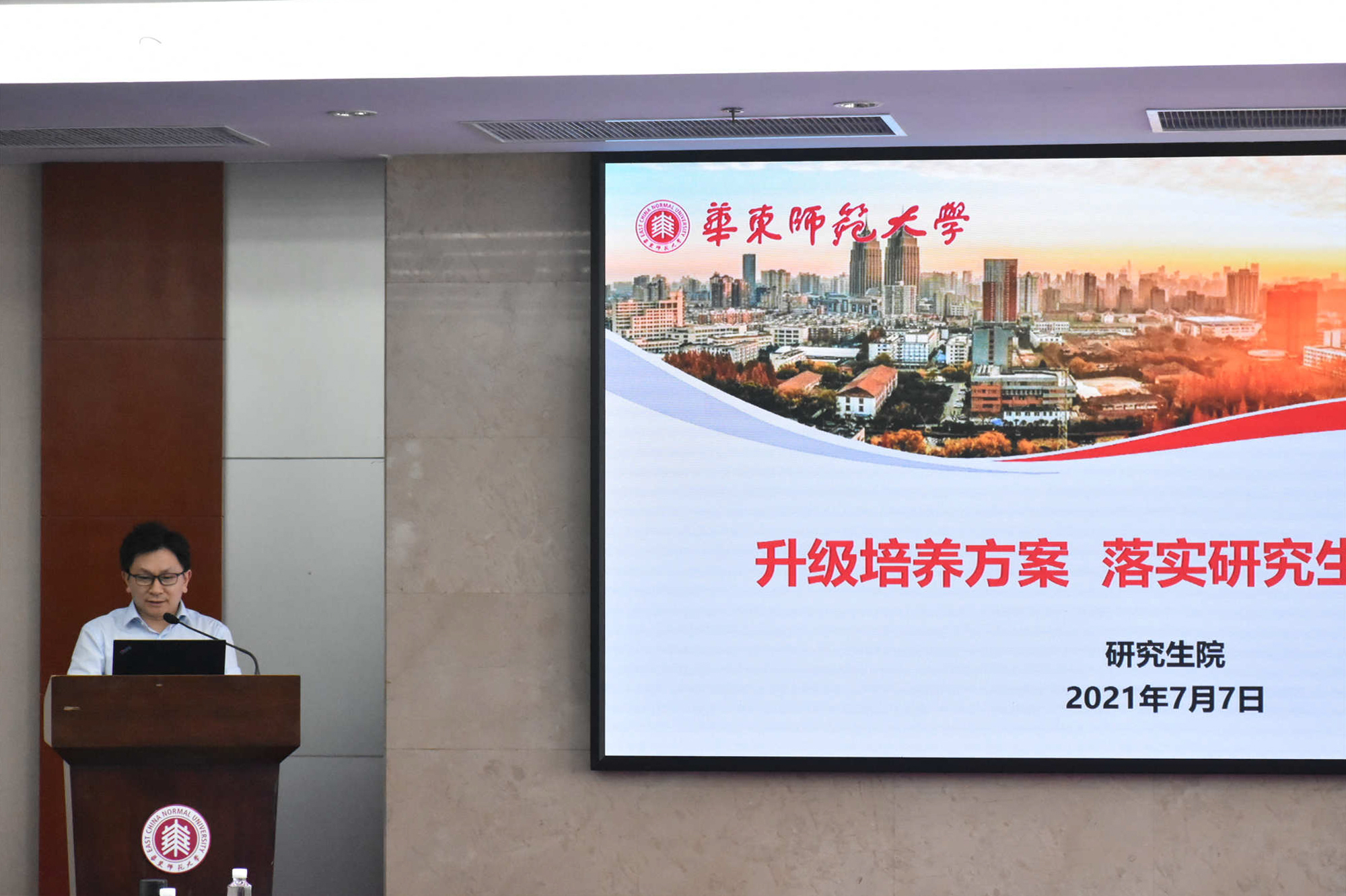 为贯彻全国、上海市研究生教育会议精神,推动学校卓越育人工作和课程卓越研讨,落实研究生卓越育人工作方案,深化研究生教育评价专项改革成果,7月7日下午,华东师大召开研究生卓越育人专题会。校领导梅兵、钱旭红、朱民、曹友谊、孙真荣,校长助理、校学位评定委员会、教学委员会负责人和代表、学位点责任教授、研究生培养方案审读专家,以及各培养单位党政负责人及研究生教育分管领导、学生工作副书记、研究生工作秘书,各相关职能部门负责人等400余人以线上和线下相结合的形式参会。会议由副校长、研究生院院长周傲英主持。