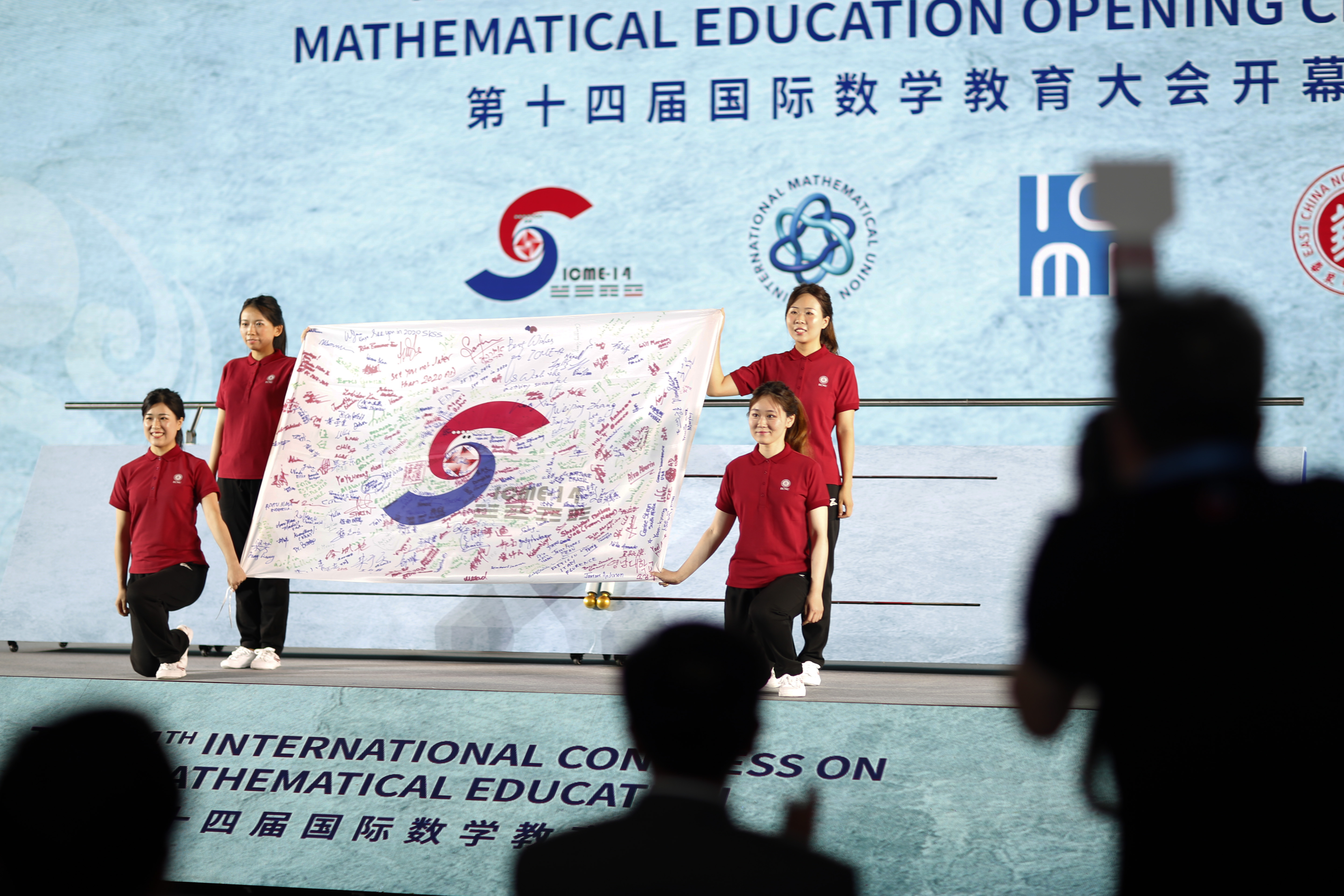 一面签满世界各国数学教育家名字的旗帜在上海万象城awcsport官网闪亮登场