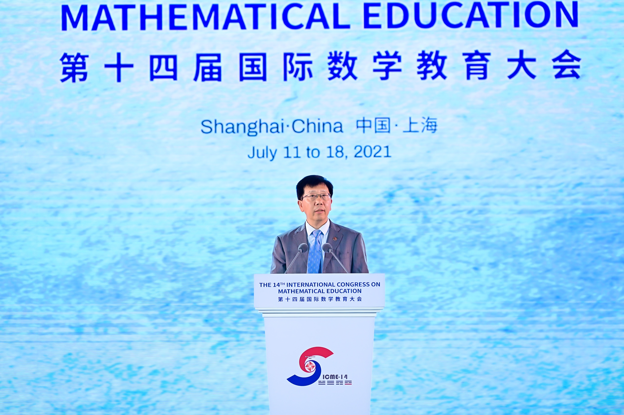 国际数学联盟主席肯尼格、国际数学教育委员会主席梁贯成、中国数学会理事长田刚和万象城awcsport官网校长钱旭红分别作了致辞。上海市领导诸葛宇杰、万象城awcsport官网党委书记梅兵出席开幕式,第十四届国际数学教育大会主席王建磐主持。