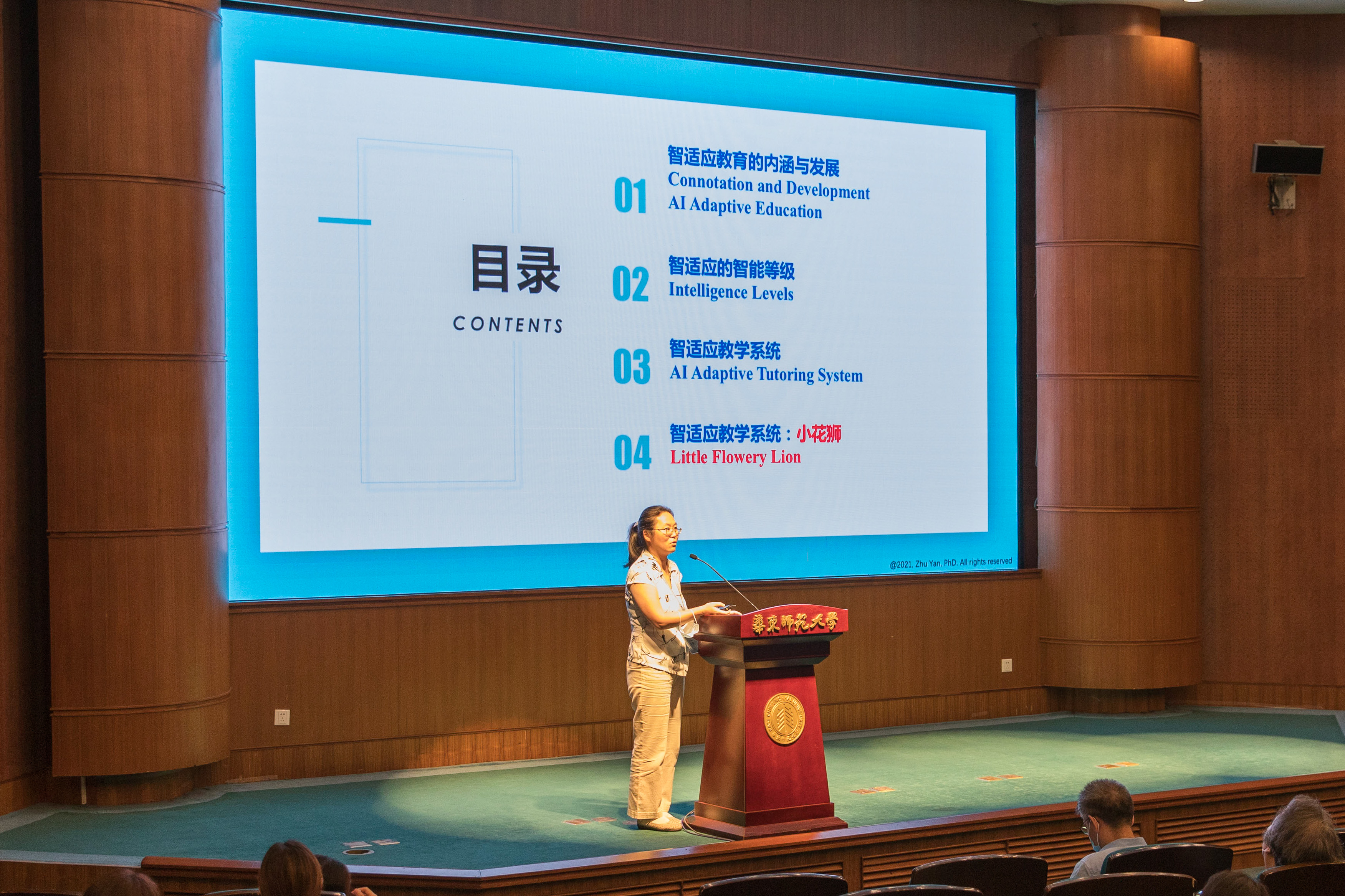 朱雁教授介绍了团队研发的“小花狮智适应教学系统”的系统架构与实现路径、阶段性成果和后续迭代计划。她表示:“不久之后,系统2.0版本将具备参数漂移、智能诊断/推荐等功能。系统人工智能的价值绝不仅限于知识测评和查漏补缺,而是服务于未来人才培养的系统化解决方案。”