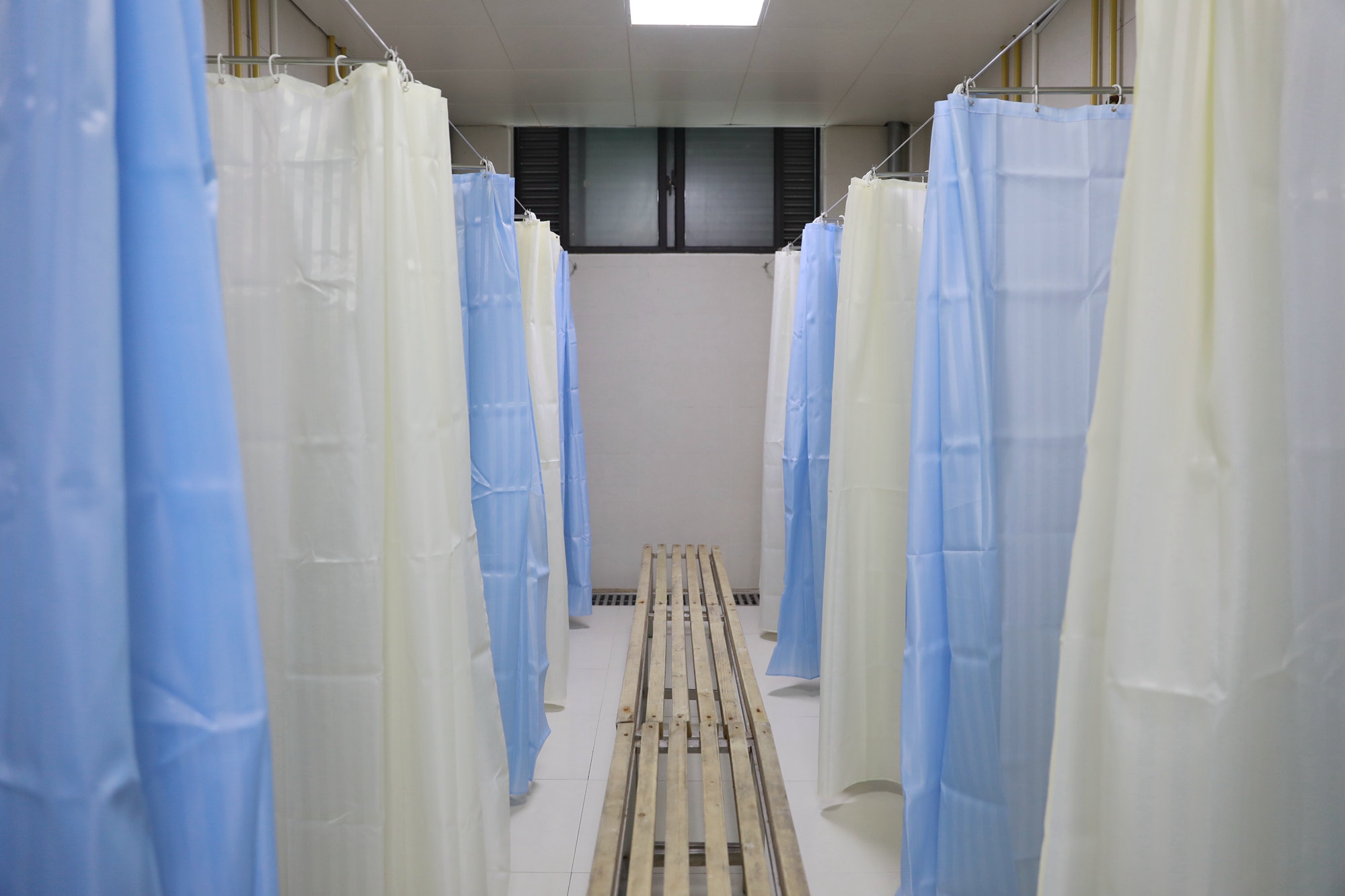 同学们关心的洗澡问题,也是学校关注的重点之一。浴室门口张贴醒目提示:“淋浴间、更衣柜,双号暂停使用”。每个洗澡间新装了浴帘,浴室将延长开放时间,定时清洗消毒,工作人员及时查看浴室内部人员密度,如发现内部人员达到使用阈值,将及时告知排队师生:浴室使用人数达到上限,实施限流。