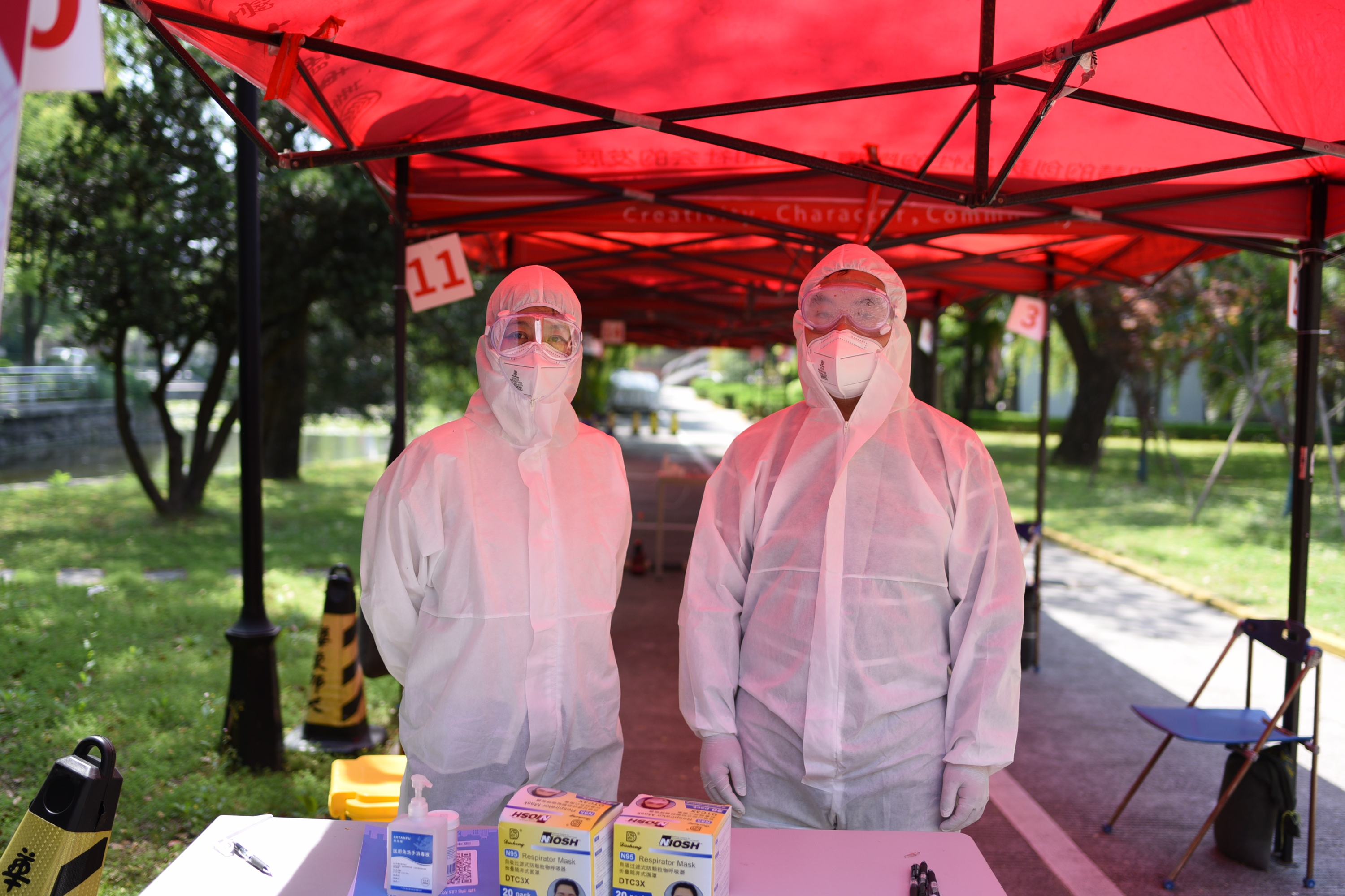 为全面提升学校疫情防控应急处置能力,切实保障广大师生生命安全和身体健康,充分做好学生返校疫情防控准备工作,按照上海市、学校疫情防控应急预案相关精神和要求,结合学校工作实际,4月25日上午9:00,华东师大在中山北路校区组织开展了学生返校疫情防控模拟演练。副校长戴立益担任总指挥;疫情防控应急处置总指挥部成员,来自学校办、教师工作部、学工部、保卫处、后勤保障部、校医院以及各学部院系等近70名教职员工全程参与。