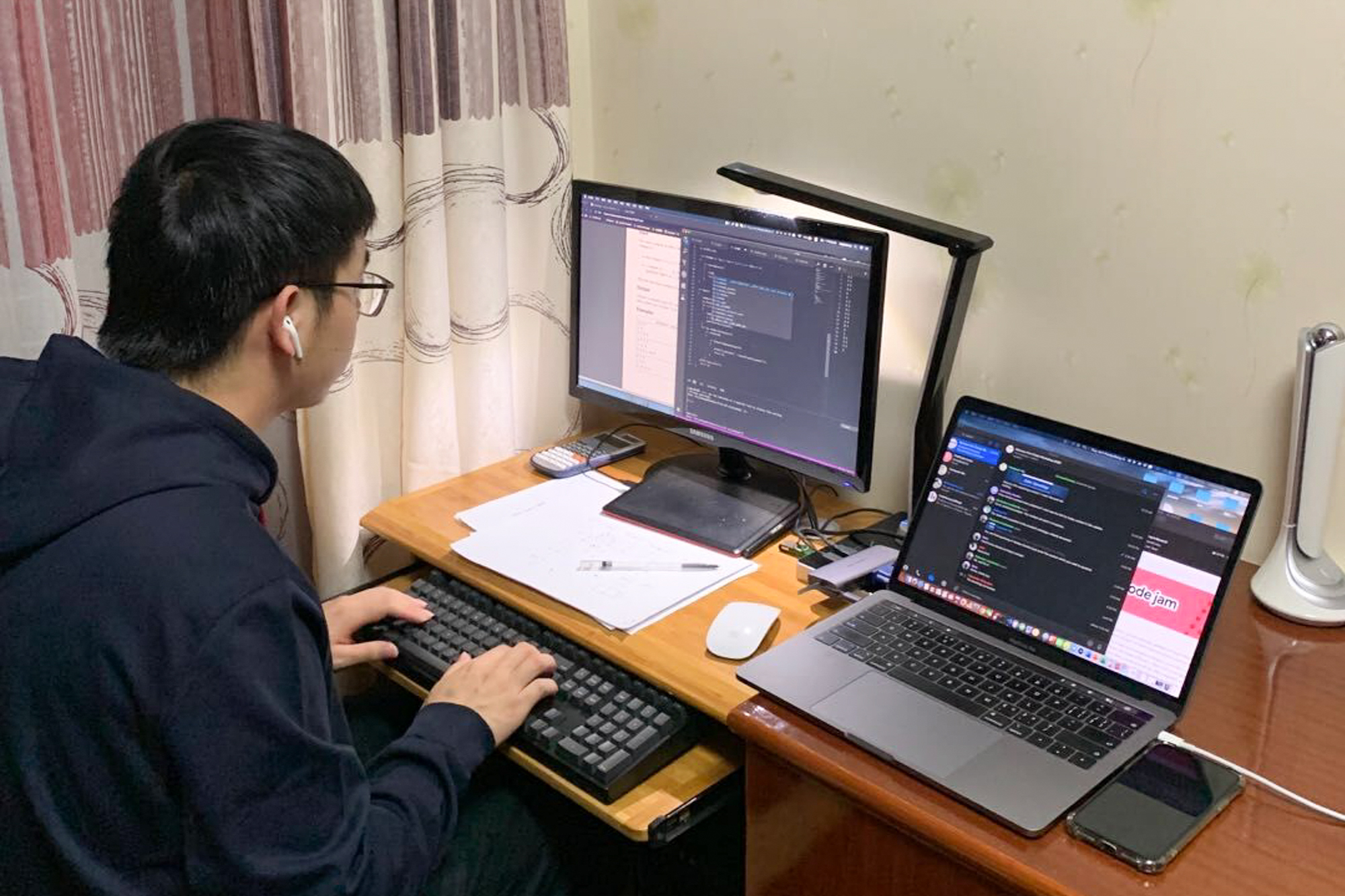 朱桐说,外公外婆家人员众多,没有独立的居住空间,而且大家的生活作息也不尽相同,学习训练环境远不如上海家中。但万幸的是,他随身携带着笔记本电脑和降噪耳机,在家人的理解与支持下,大家为朱桐腾出了餐桌这一相对安静和舒适的地方供他专心训练。朱桐保持着和在上海一样的训练节奏,每周都按照计划和队友训练并且参加Codeforces上的个人比赛。
