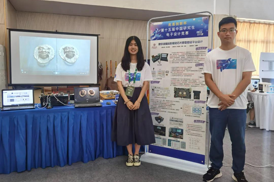 从全国大学生电子设计竞赛、研究生电子设计竞赛,到“华为杯”研究生创“芯”大赛,再到“互联网+”大学生创新创业大赛……“竞赛达人”成了周家辉闪耀的标签之一。在各大赛事的磨砺下,他不仅找到了科研成果的应用之路,也离“ICT领域杰出工程师”的目标更近一步。他开发的数字微镜器件驱动芯片FPGA原型验证平台核心算法性能达到国际先进水平,在数字微镜器件的芯片设计、测试、驱动控制等核心技术方面解决了“卡脖子”问题。