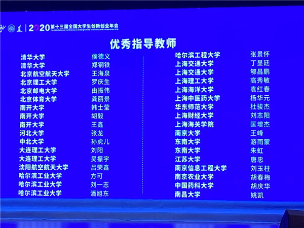 第十三届全国大学生创新创业年会"优秀论文奖"与"优秀指导教师"名单(部分)