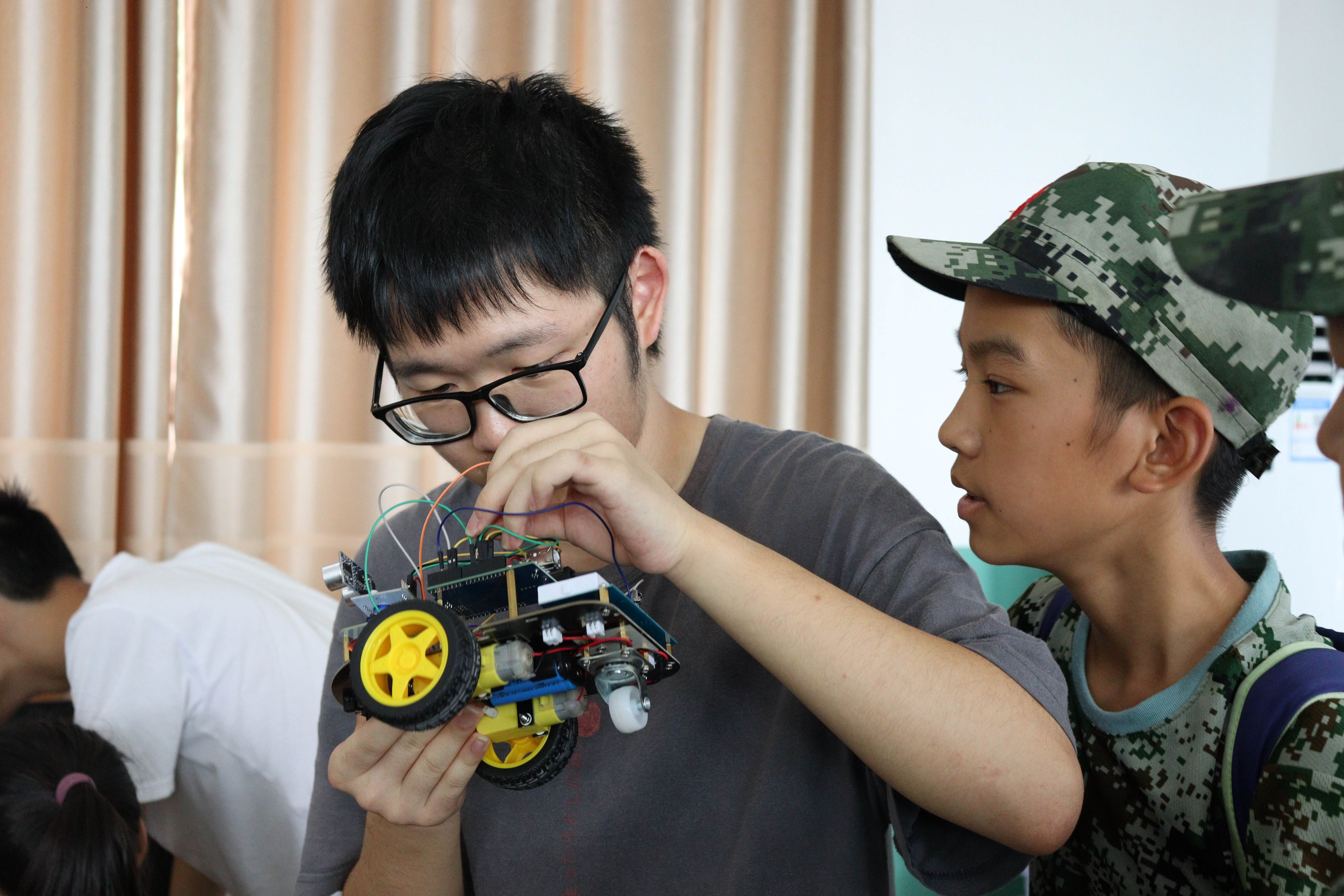 “科技一夏,编码未来”创客夏令营团队上课时解决同学问题
