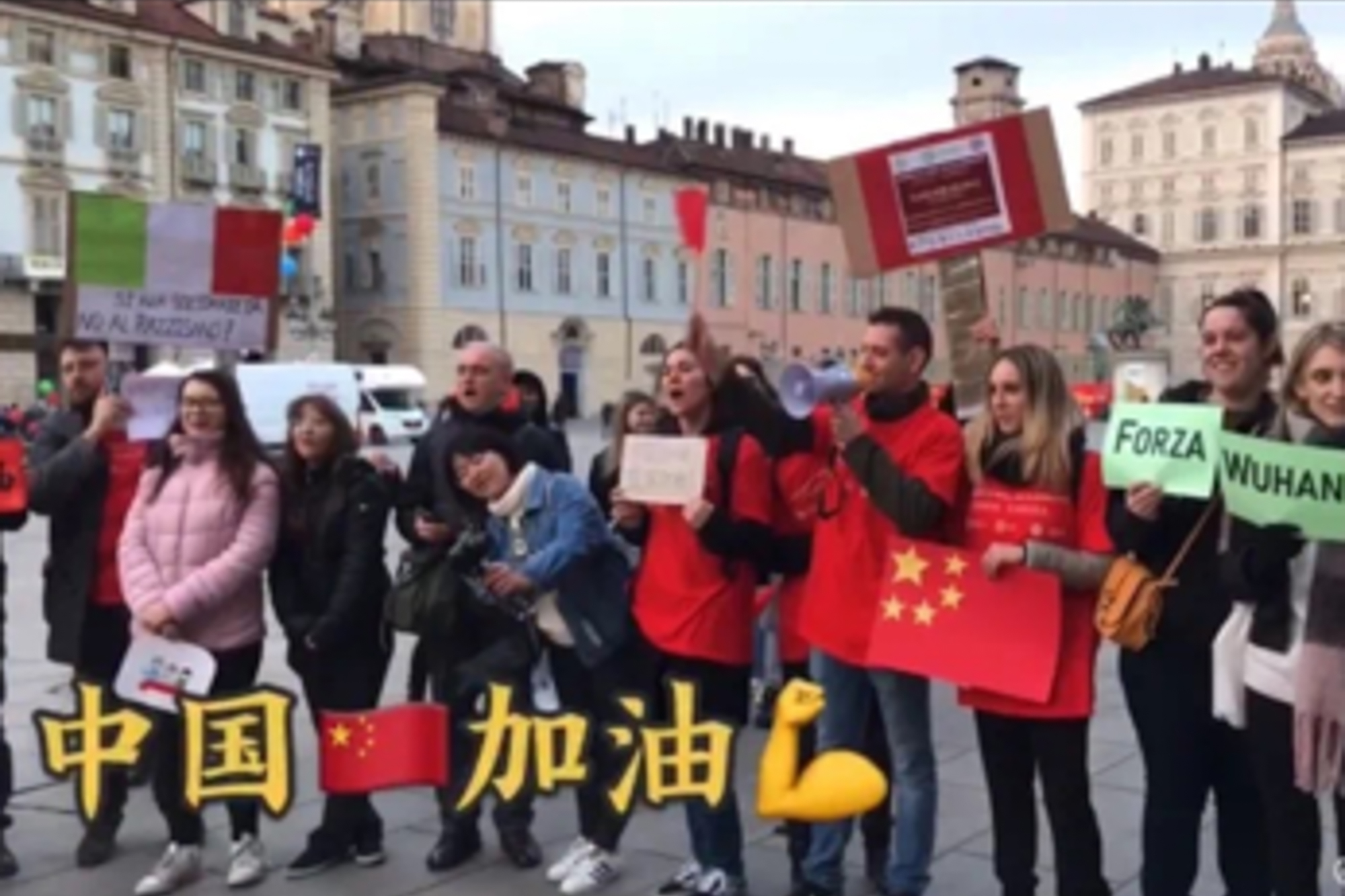 意大利都灵孔子学院组织的“隔离病毒,但别隔离爱!”快闪活动