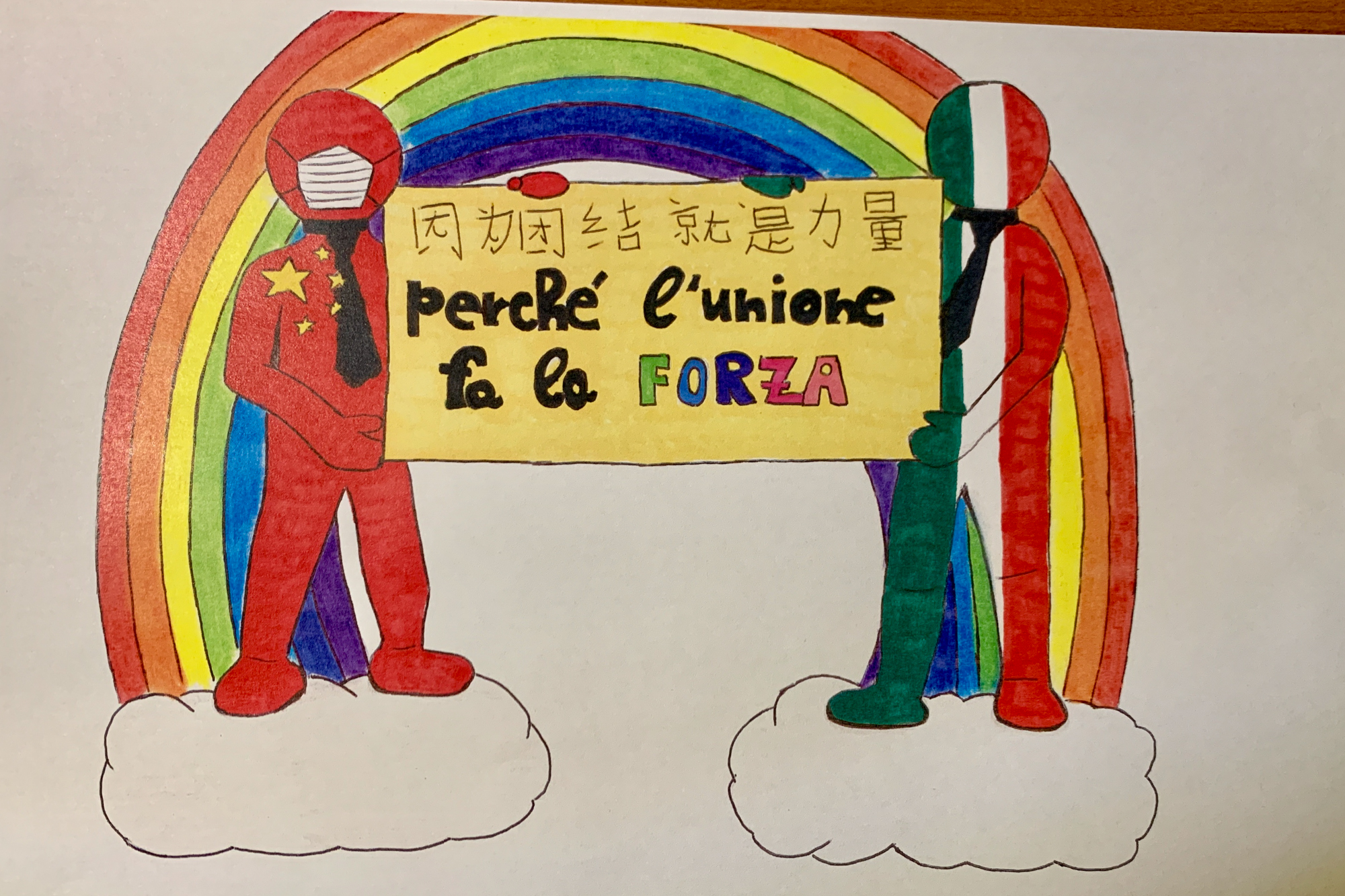 疫情下,海外的部分当地民众受到个别当地媒体的错误诱导,对国际中文教师的身体情况和工作产生了极大误解和质疑,甚至出现了歧视、殴打当地华人的事件。国际中文专职教师面对这样的情况没有袖手旁观,他们身体力行、现身说法,向身边的当地居民展现中国抗疫实情。在意大利都灵孔院的组织下,老师们参与到“隔离病毒,但别隔离爱!”的快闪活动中。活动也得到了当地学生和家长的支持。庞成老师工作的学校特别利用一整周的时间,在所有汉语课上开展声援中国抗击疫情的主题绘画活动,并挑选优秀作品在校内进行展览。“团结就是力量!”“拒绝任何形式的种族主义,我们与中国人民站在一起”这些标语开始出现在全意发行量最大的新闻报(La Stampa)、共和国报(La Repubblica)、晚邮报(Corriere della Sera)等纸媒以及电视新闻当中。意大利政界、商界的有识之士也开始纷纷组织活动,表达对在意华人的支持与鼓励,声援中国抗疫。