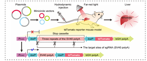 FAST系统介导的在tdTomato转基因报告小鼠[Gt(ROSA)26Sortm14(CAG-tdTomato)Hze]中的基因编辑