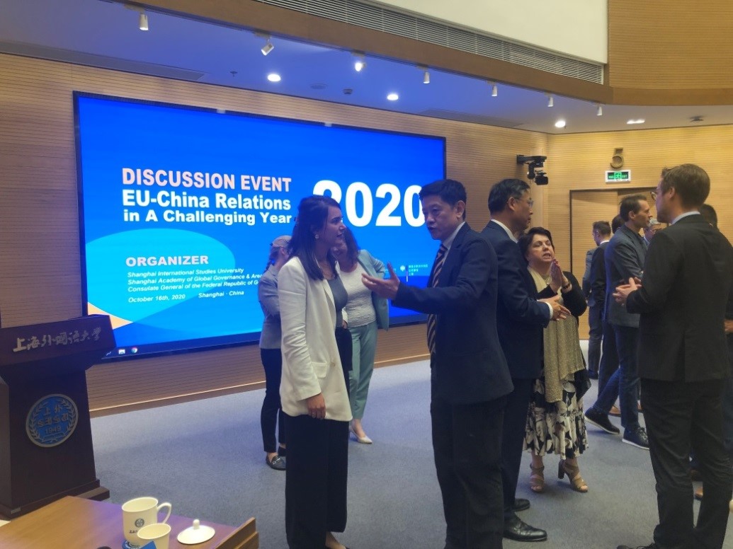 10月16日,上海市人民决策咨询基地领军人物余南平教授受邀参加在上海外国语大学松江校区图文信息中心7楼举办的中欧对话活动“EU-China Relations in a Challenging Year 2020”。
