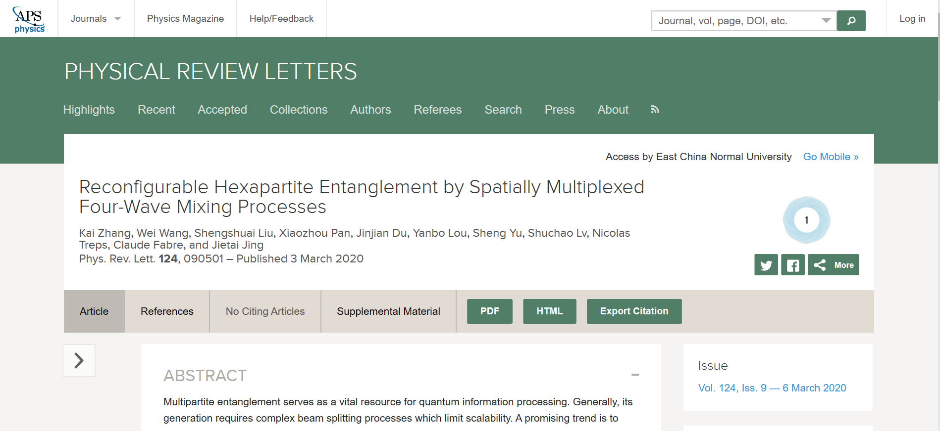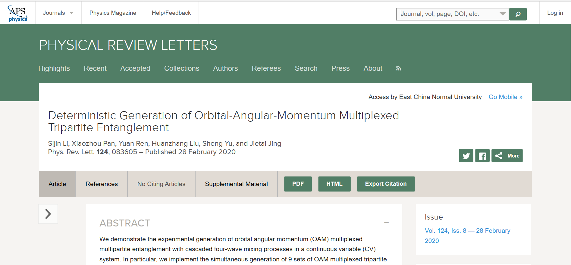 《物理评论快报》(Physical Review Letters 124, 083605 (2020)以及Physical Review Letters 124, 090501 (2020))发表荆杰泰团队研究论文