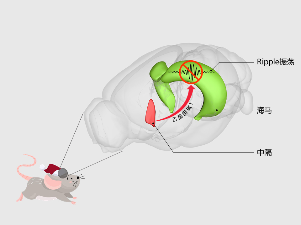 这一系列的实验研究揭示,乙酰胆碱的一个重要生理功能,是在清醒和快波睡眠状态时,抑制高频ripple节律的产生,以确保此时与动物“在线”学习记忆编码过程密切相关的theta节律能处于主导地位。研究结果发表于4月29日出版的《The Journal of Neuroscience》杂志,我校博士生马晓宇和张艺瑶为共同第一作者,徐佳敏和林龙年为共同通讯作者。