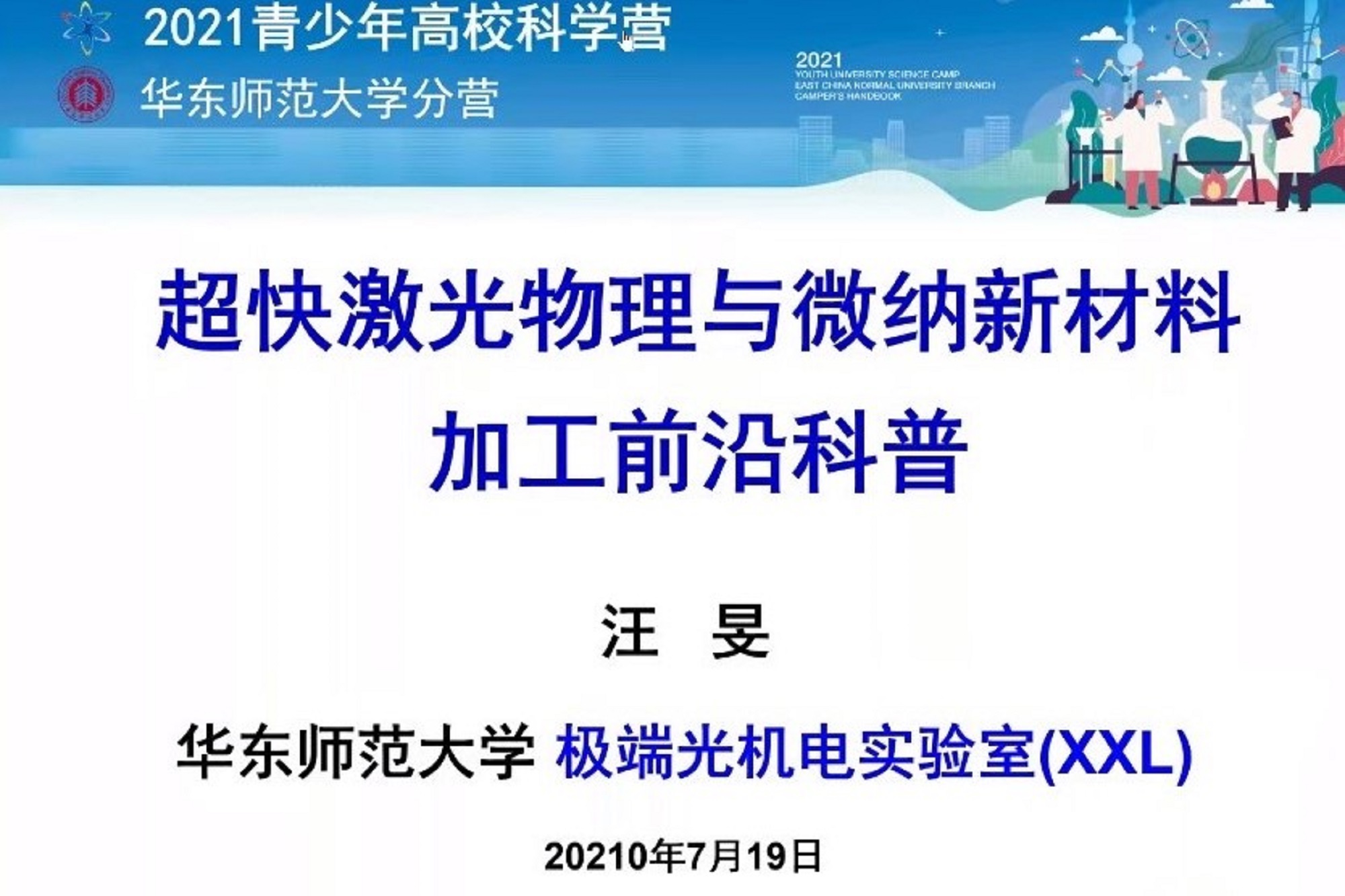 汪旻教授作超快激光物理与微纳新材料加工前沿科普