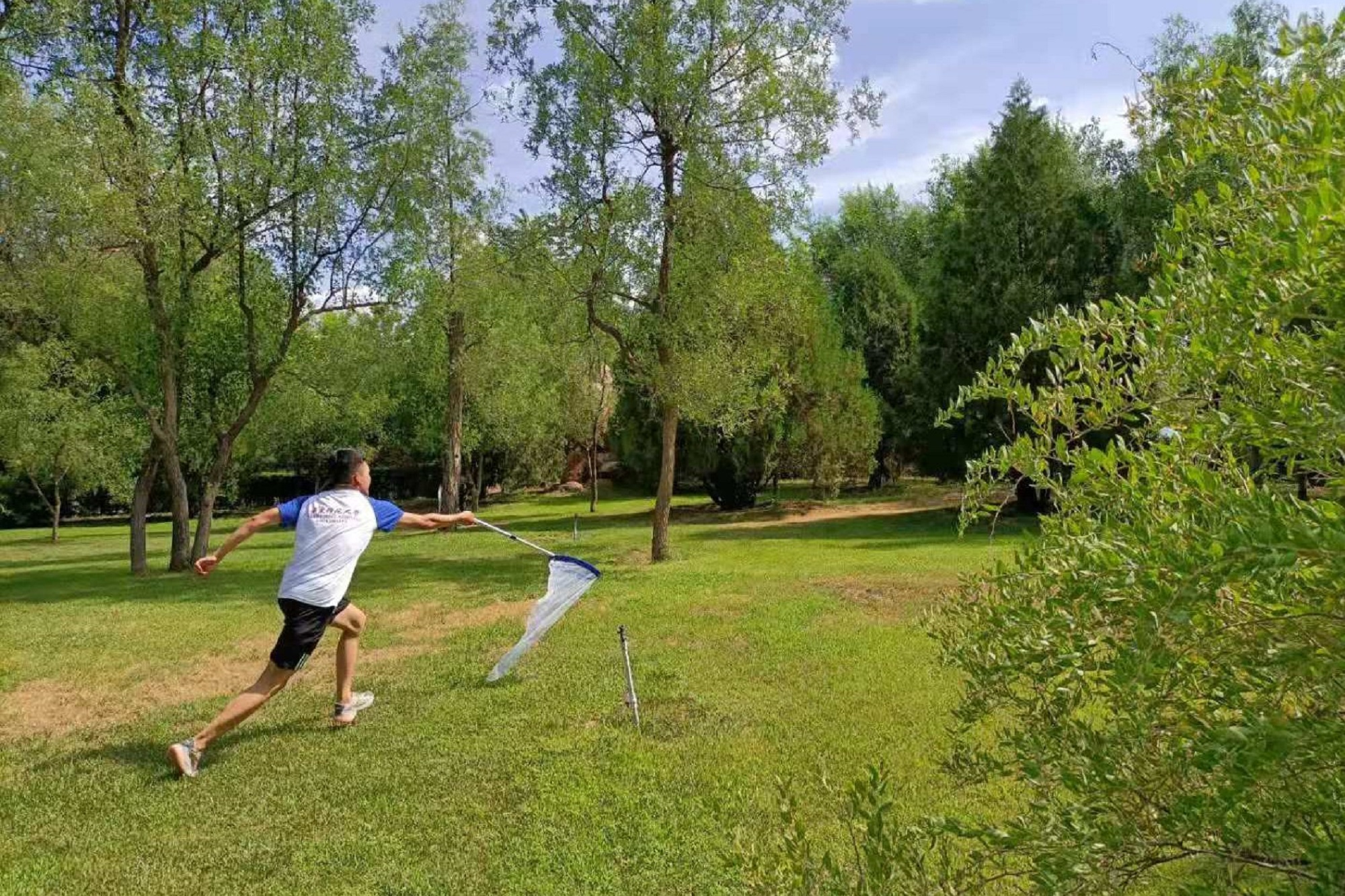 营员在户外进行昆虫的捕捉